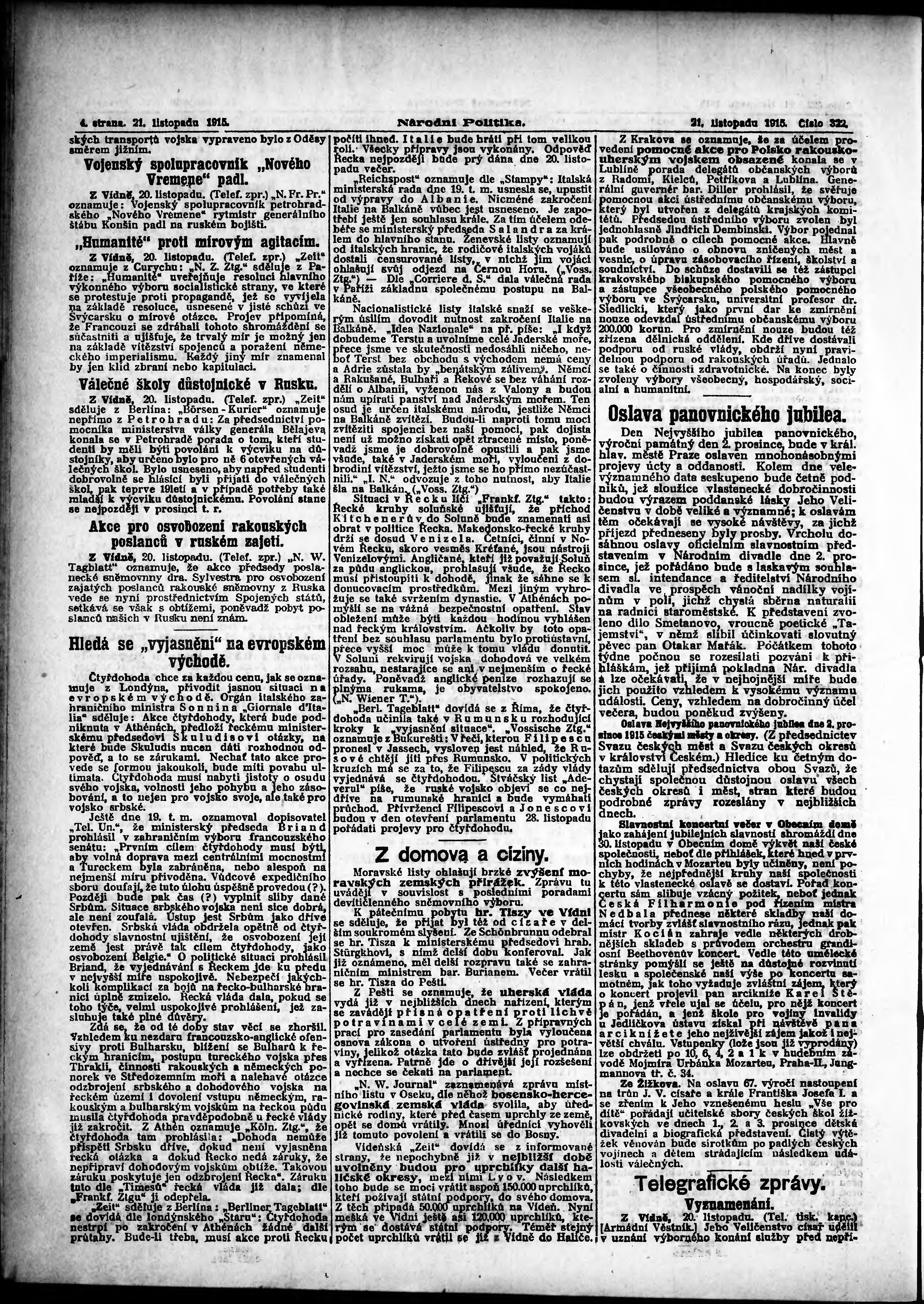 * Datum vydání výtisku: 21.11.1915 Číslo výtisku: 322 Poznámky k výtisku: ranní vydání;