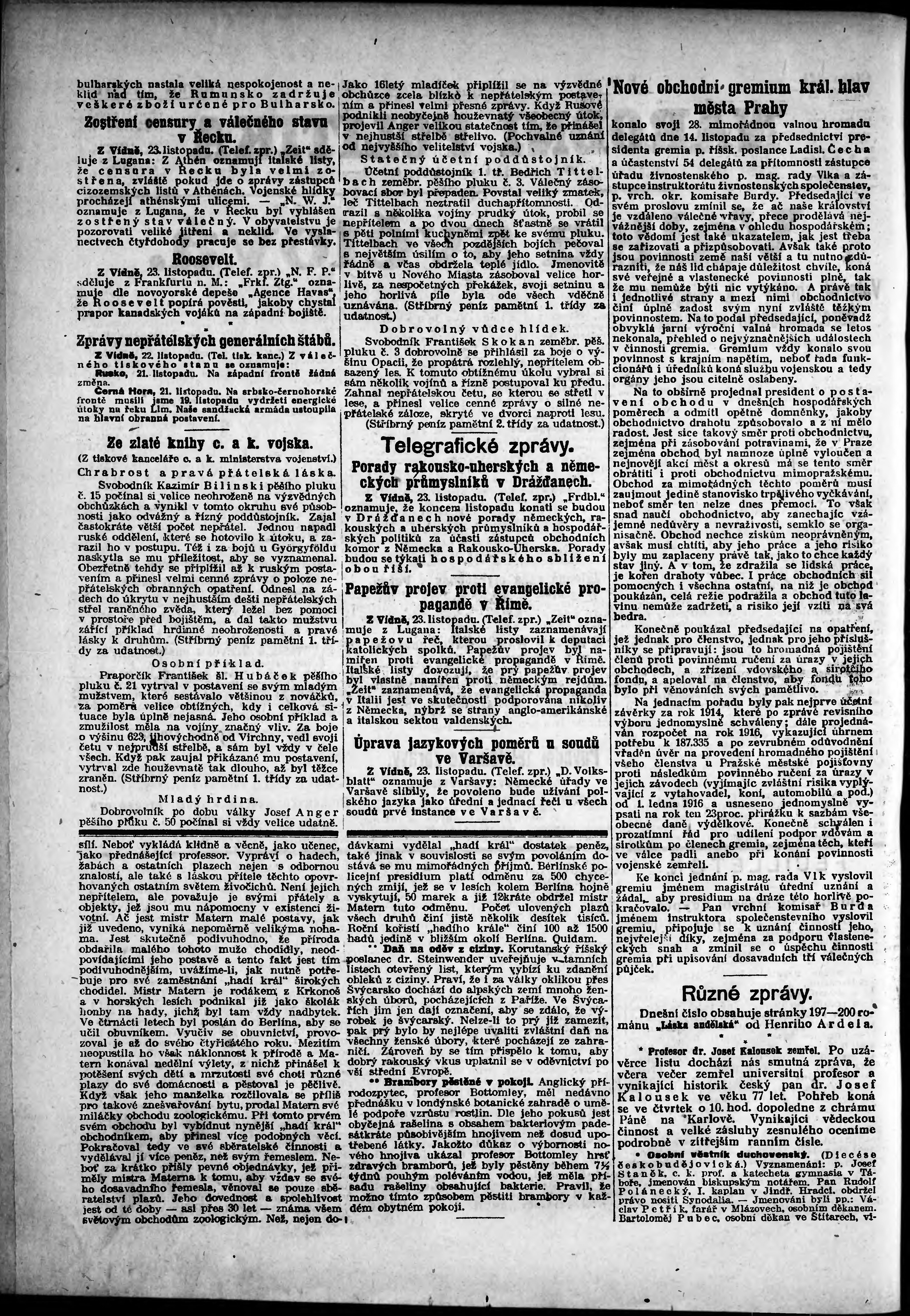 * Datum vydání výtisku: 23.11.1915 Číslo výtisku: 324 Poznámky k výtisku: odpolední vydání;