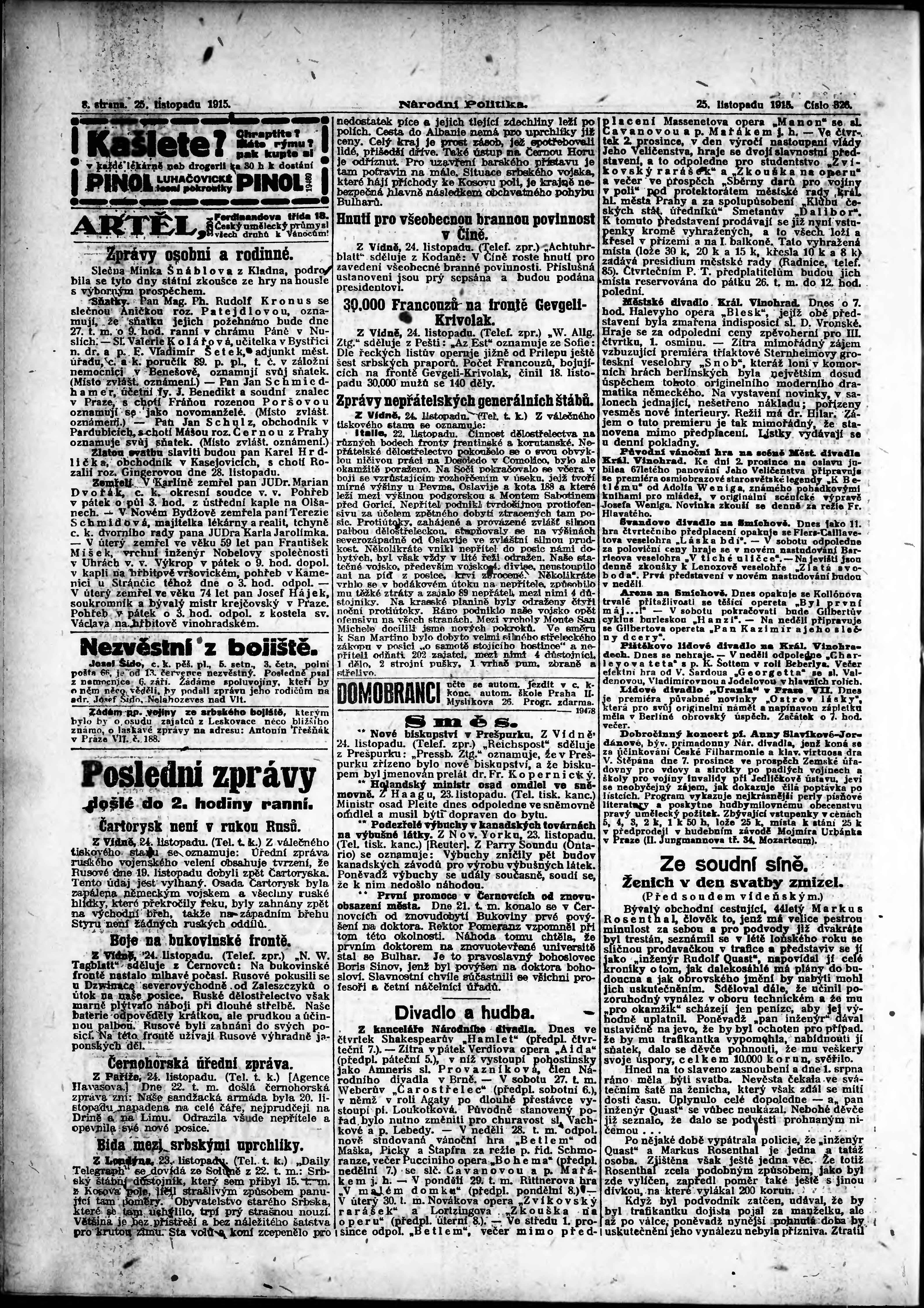 * Datum vydání výtisku: 25.11.1915 Číslo výtisku: 326 Poznámky k výtisku: ranní vydání;