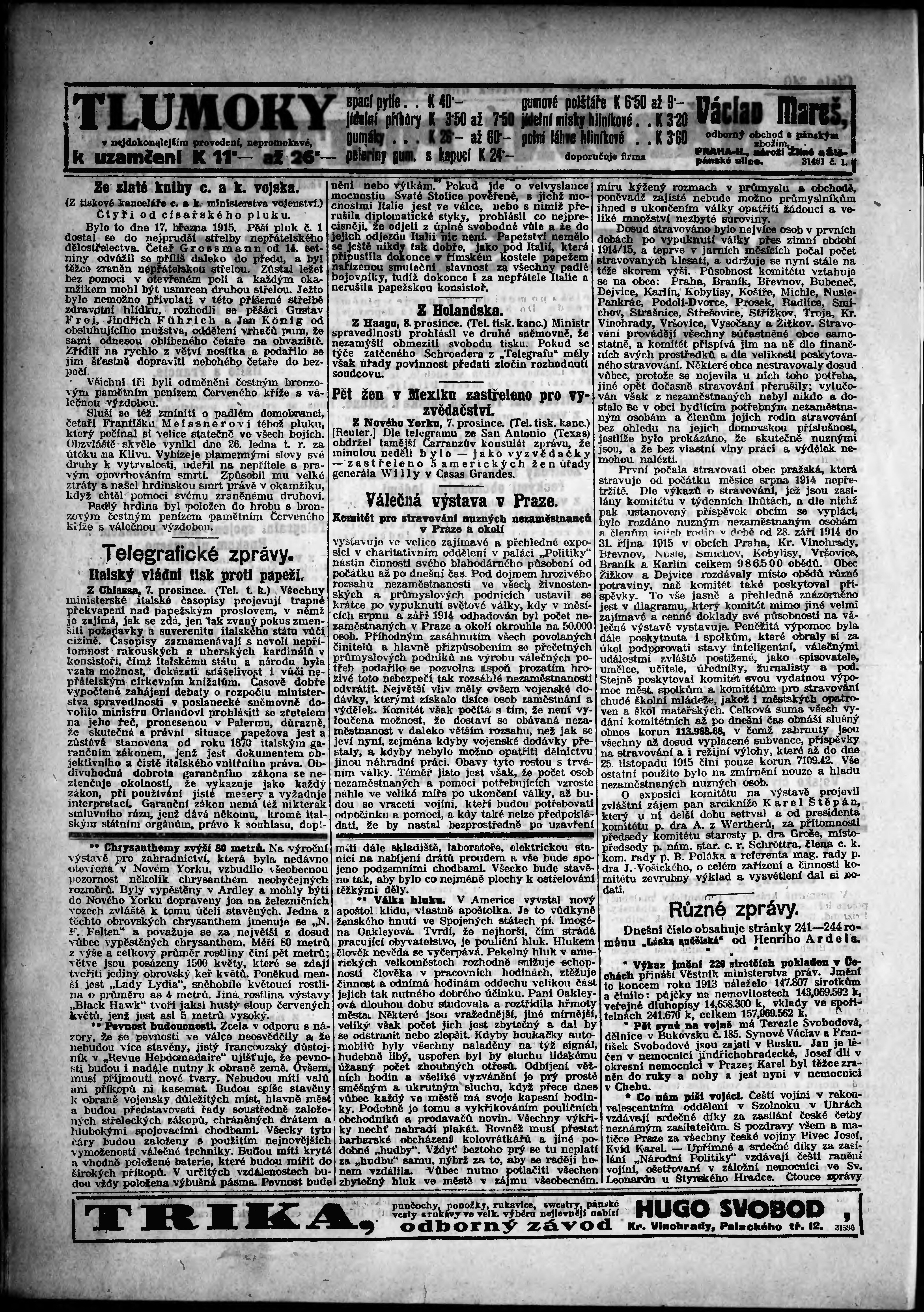 * Datum vydání výtisku: 9.12.1915 Číslo výtisku: 340 Poznámky k výtisku: odpolední vydání;