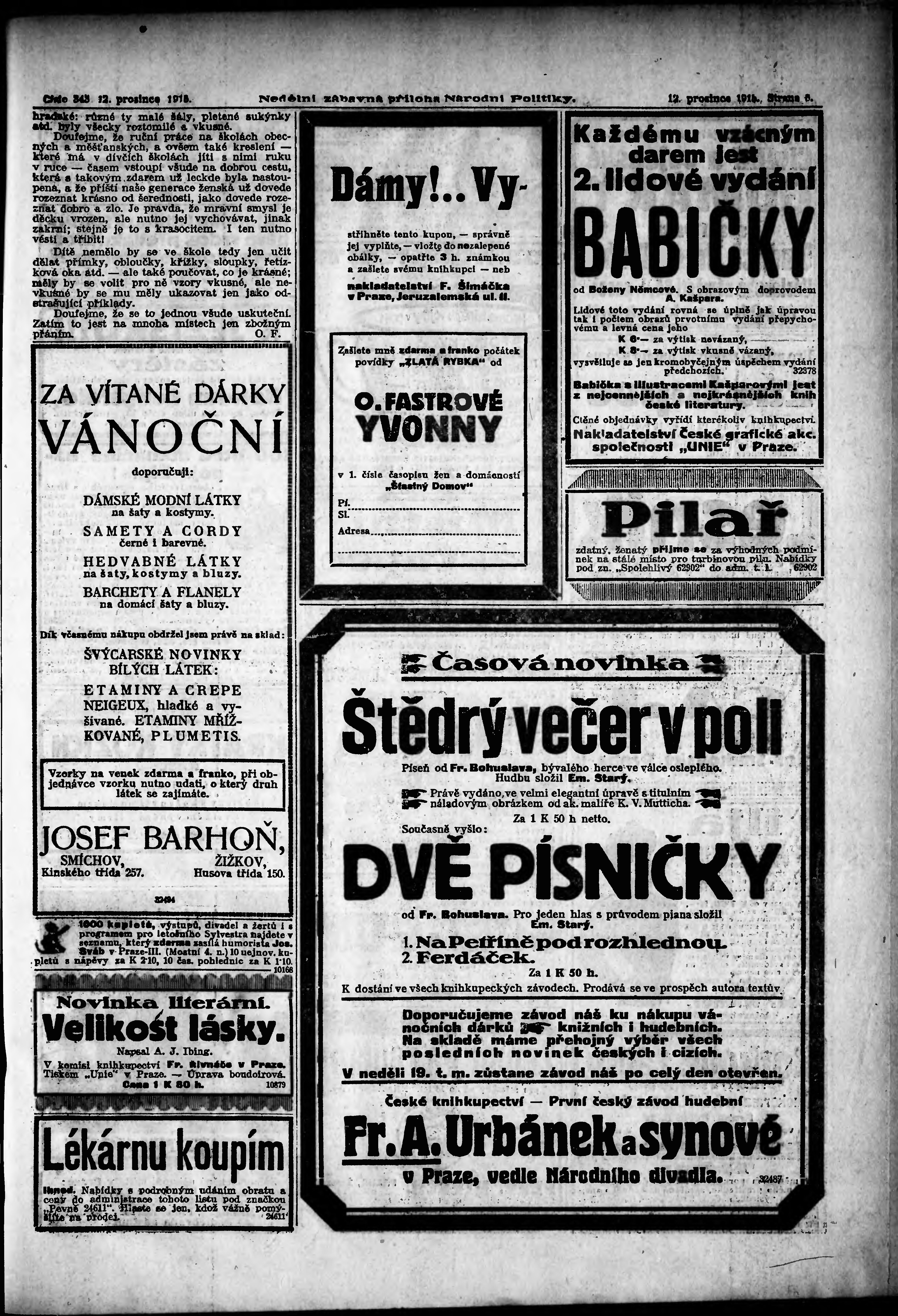 * Datum vydání výtisku: 12.12.1915 Číslo výtisku: 343 Typ výtisku: příloha