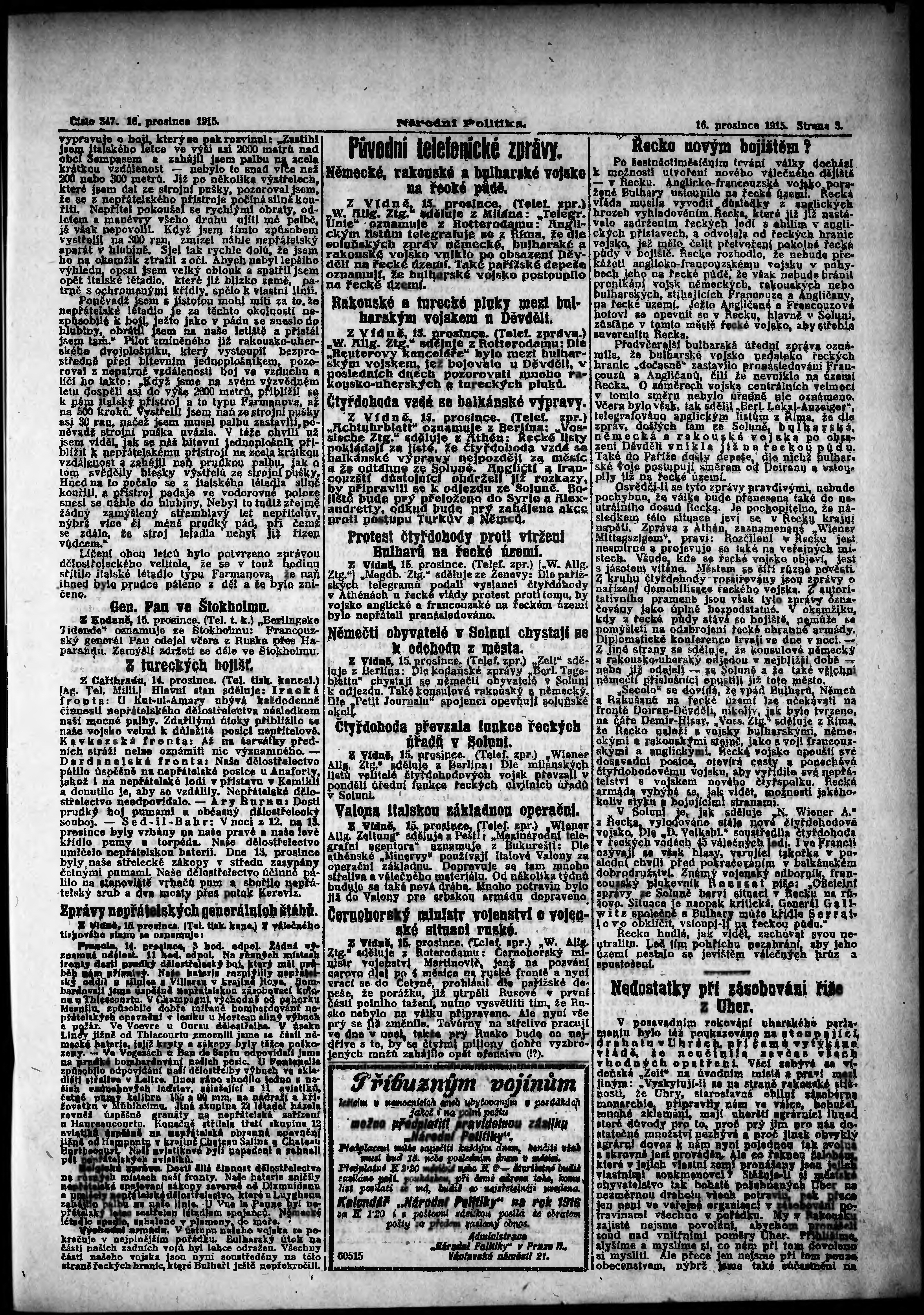 * Datum vydání výtisku: 16.12.1915 Číslo výtisku: 347 Poznámky k výtisku: ranní vydání;
