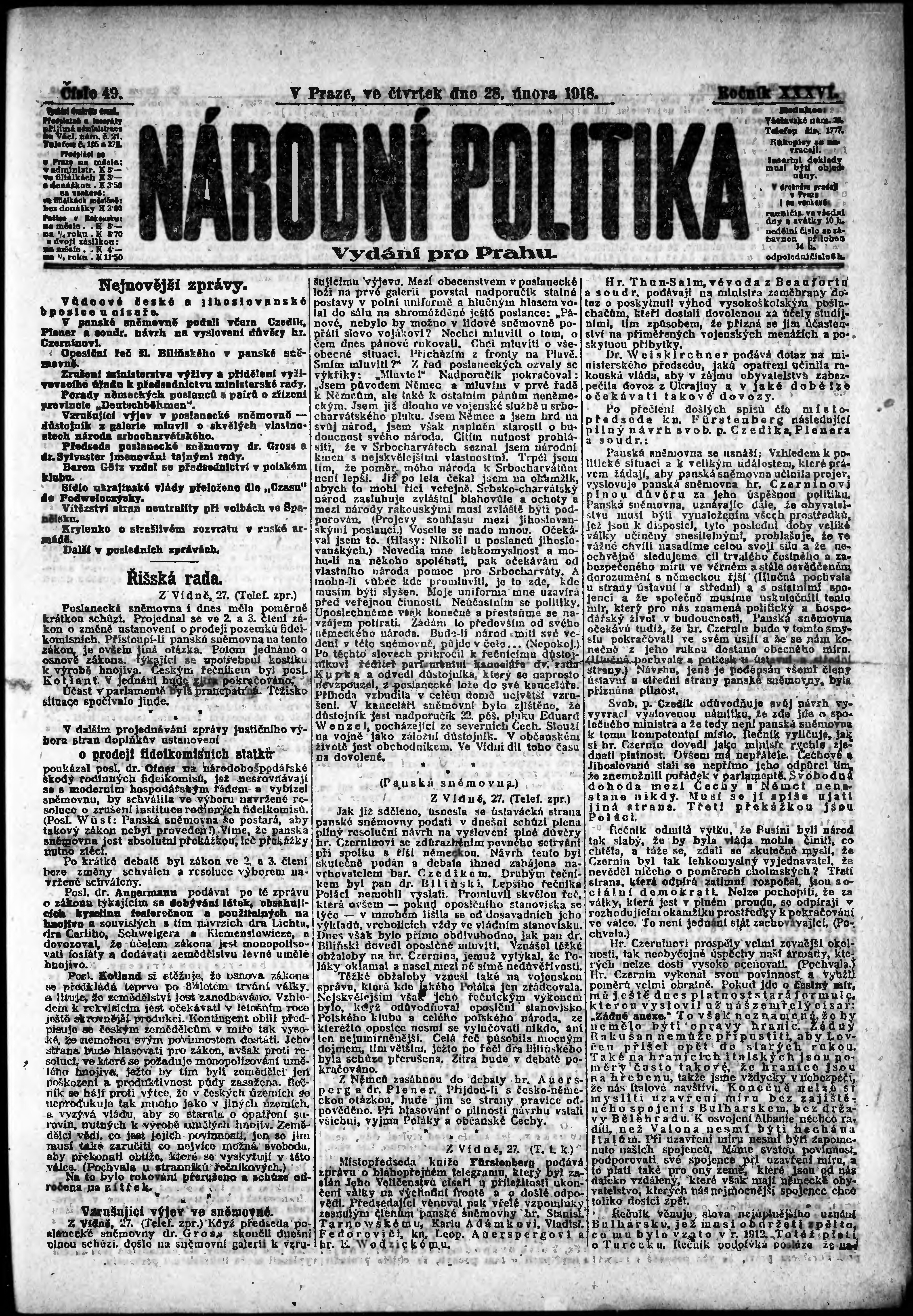 ranní vydání; vydání pro Prahu;