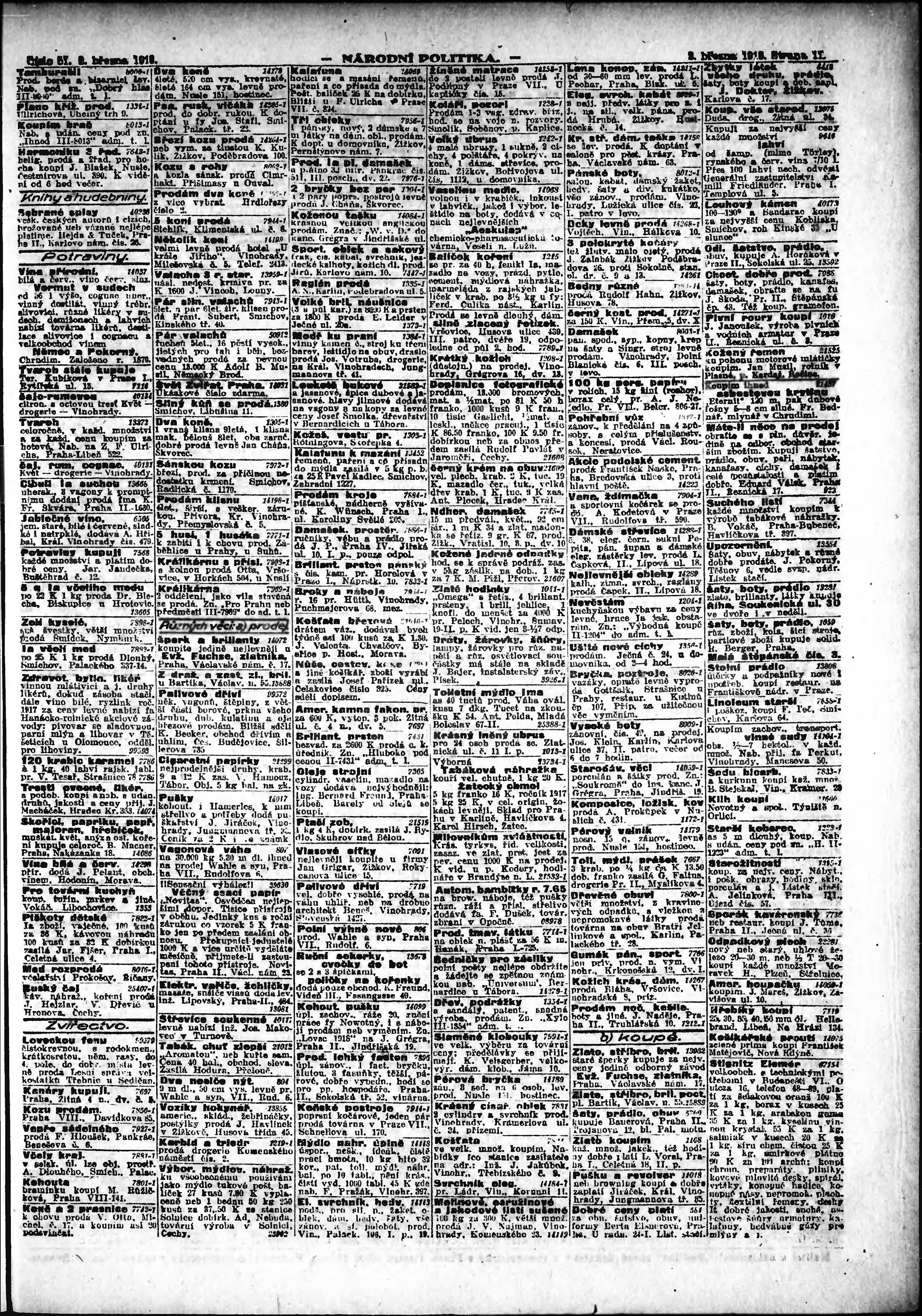* Datum vydání výtisku: 2.3.1918 Číslo výtisku: 51 Poznámky k výtisku: ranní vydání; vydání pro Prahu;