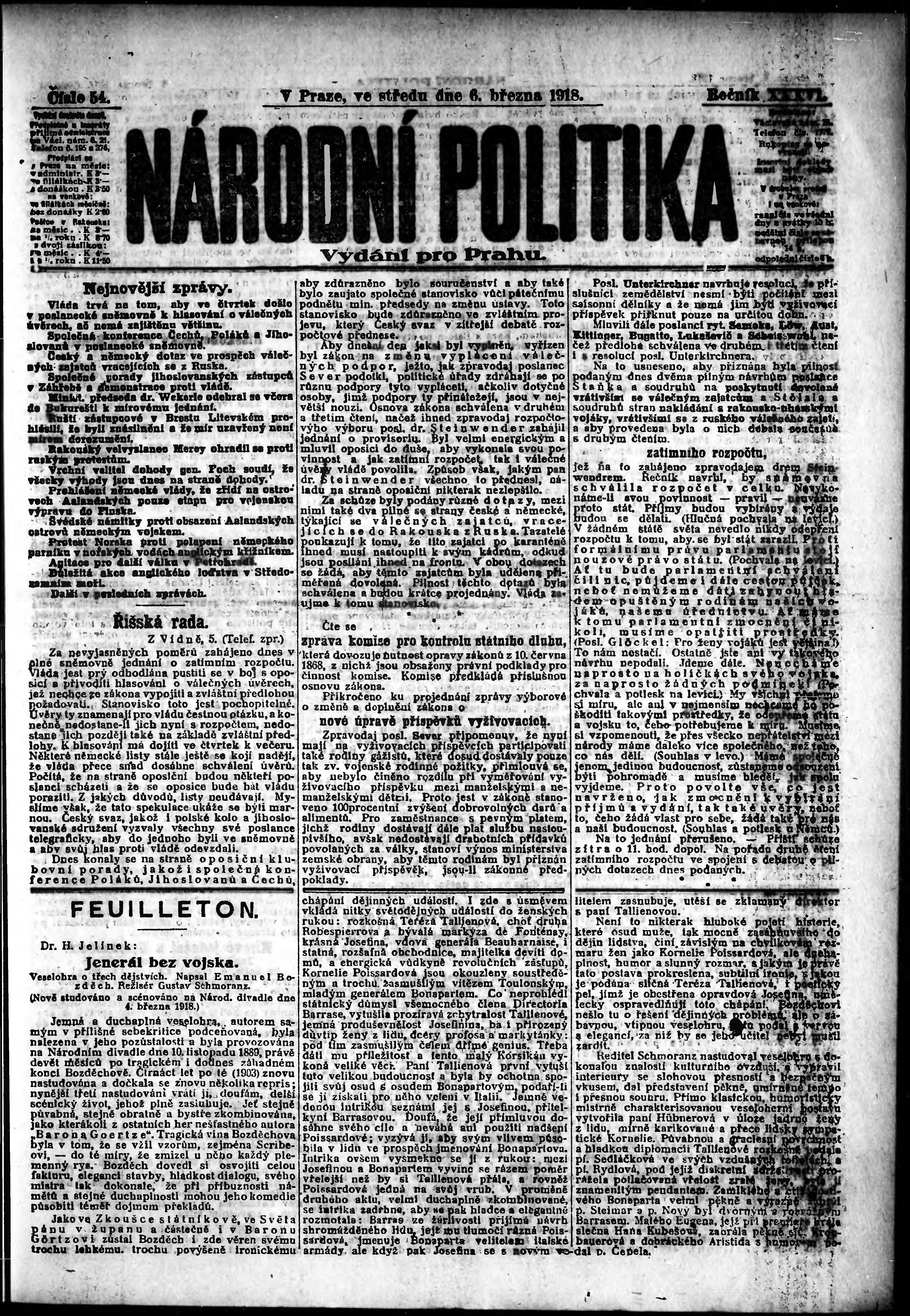 Datum vydání výtisku: 6.3.1918