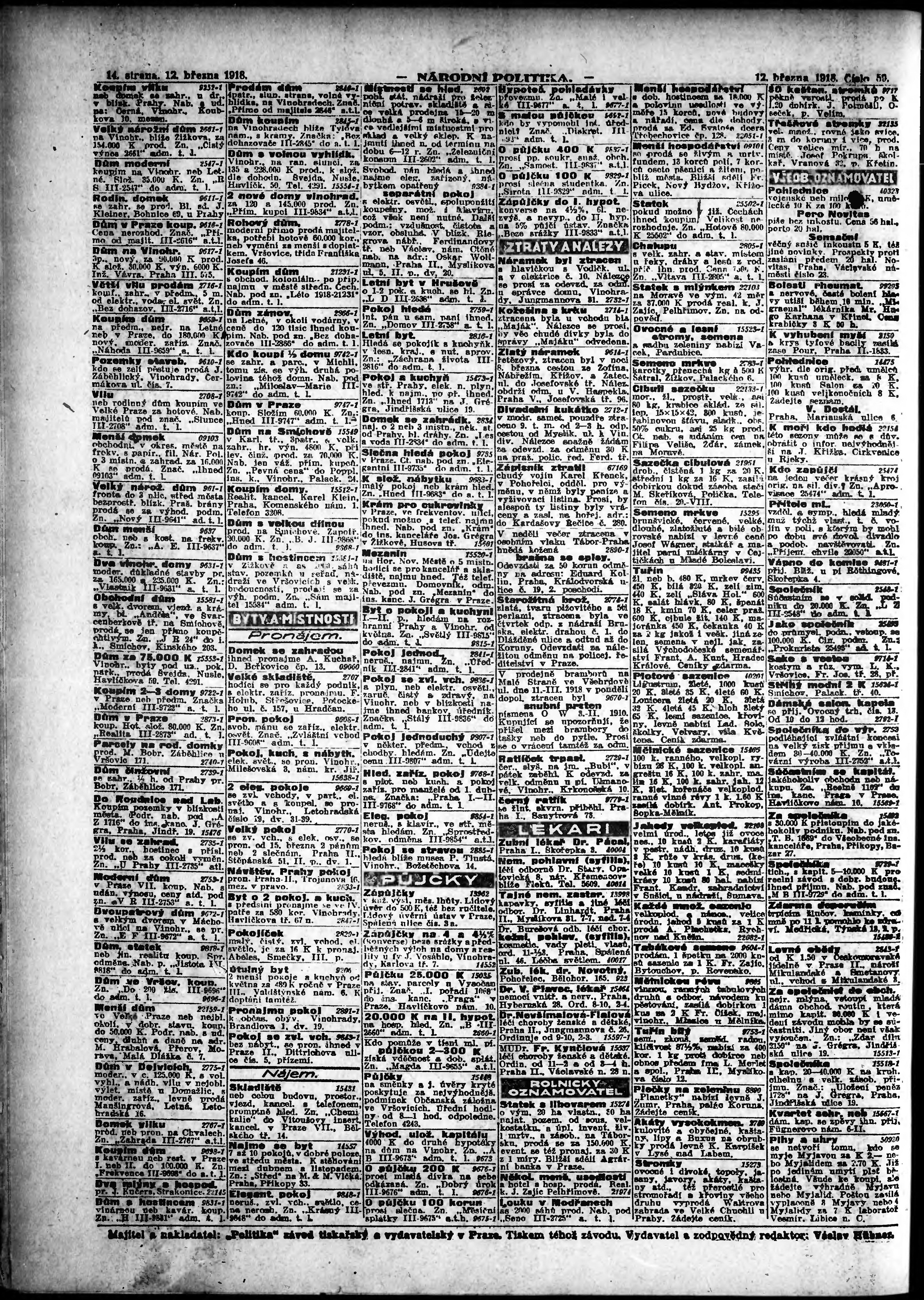 Datum vydání výtisku: 12.3.1918