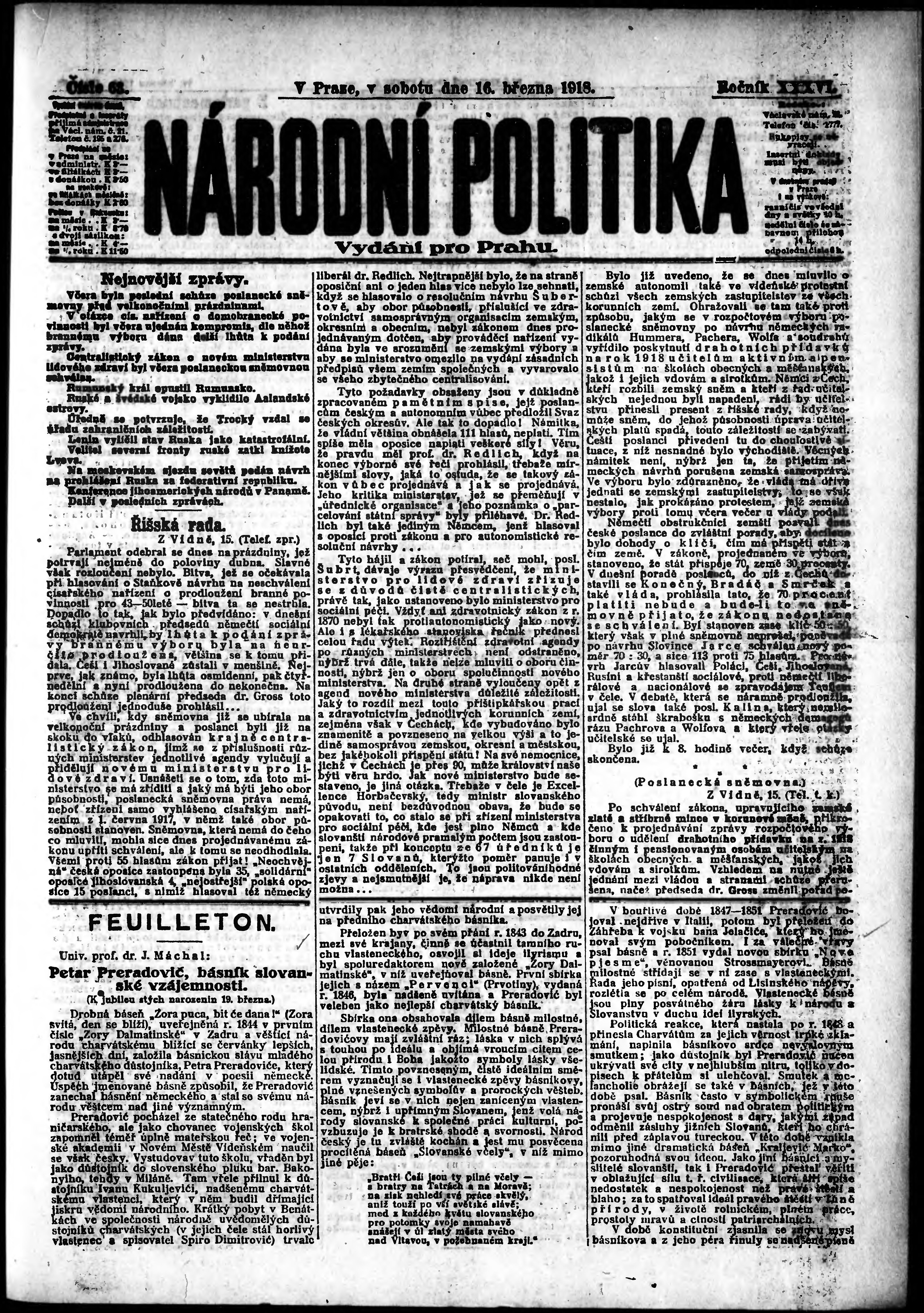 ranní vydání; vydání pro Prahu;
