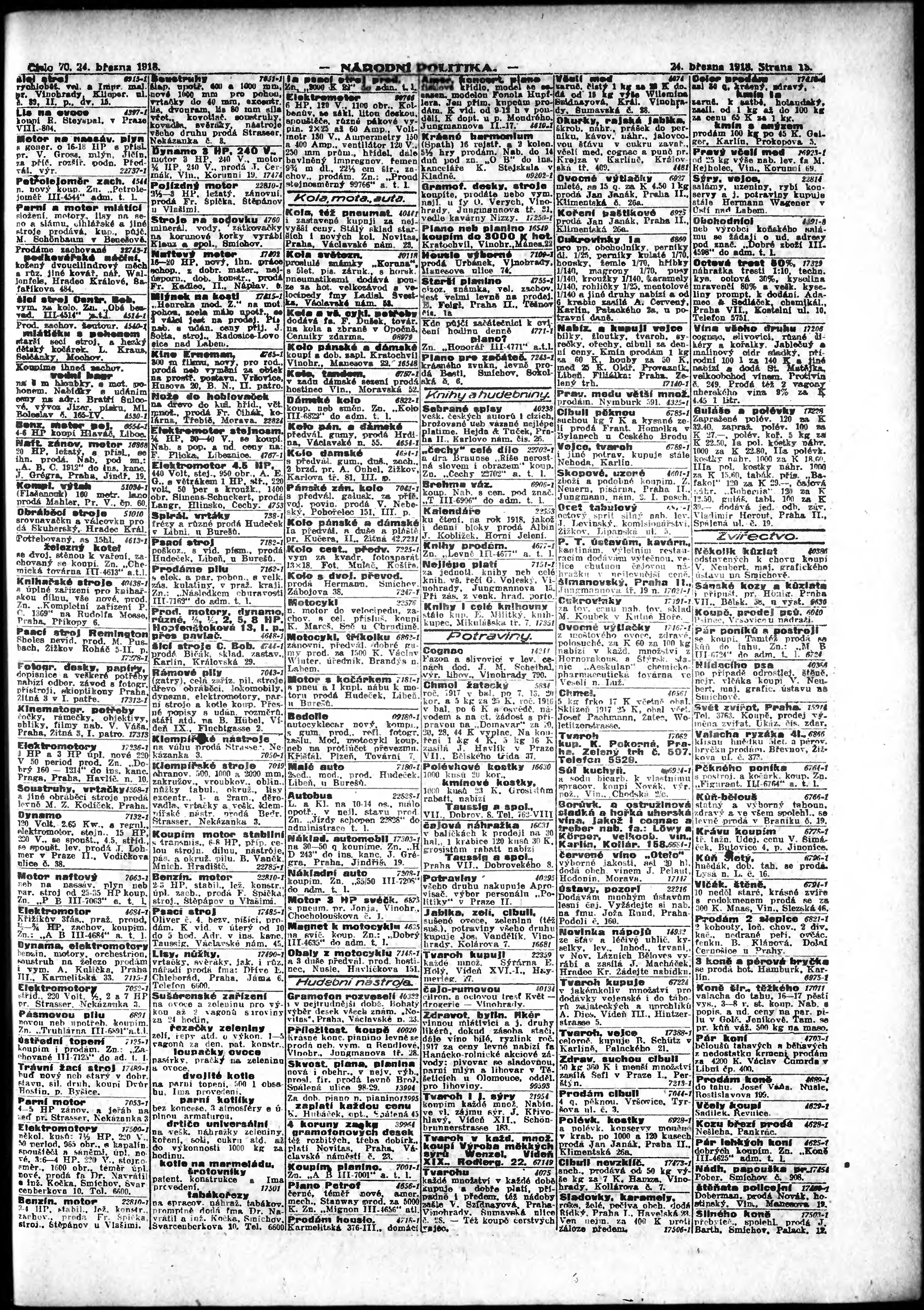 * Datum vydání výtisku: 24.3.1918 Číslo výtisku: 70 Poznámky k výtisku: ranní vydání;