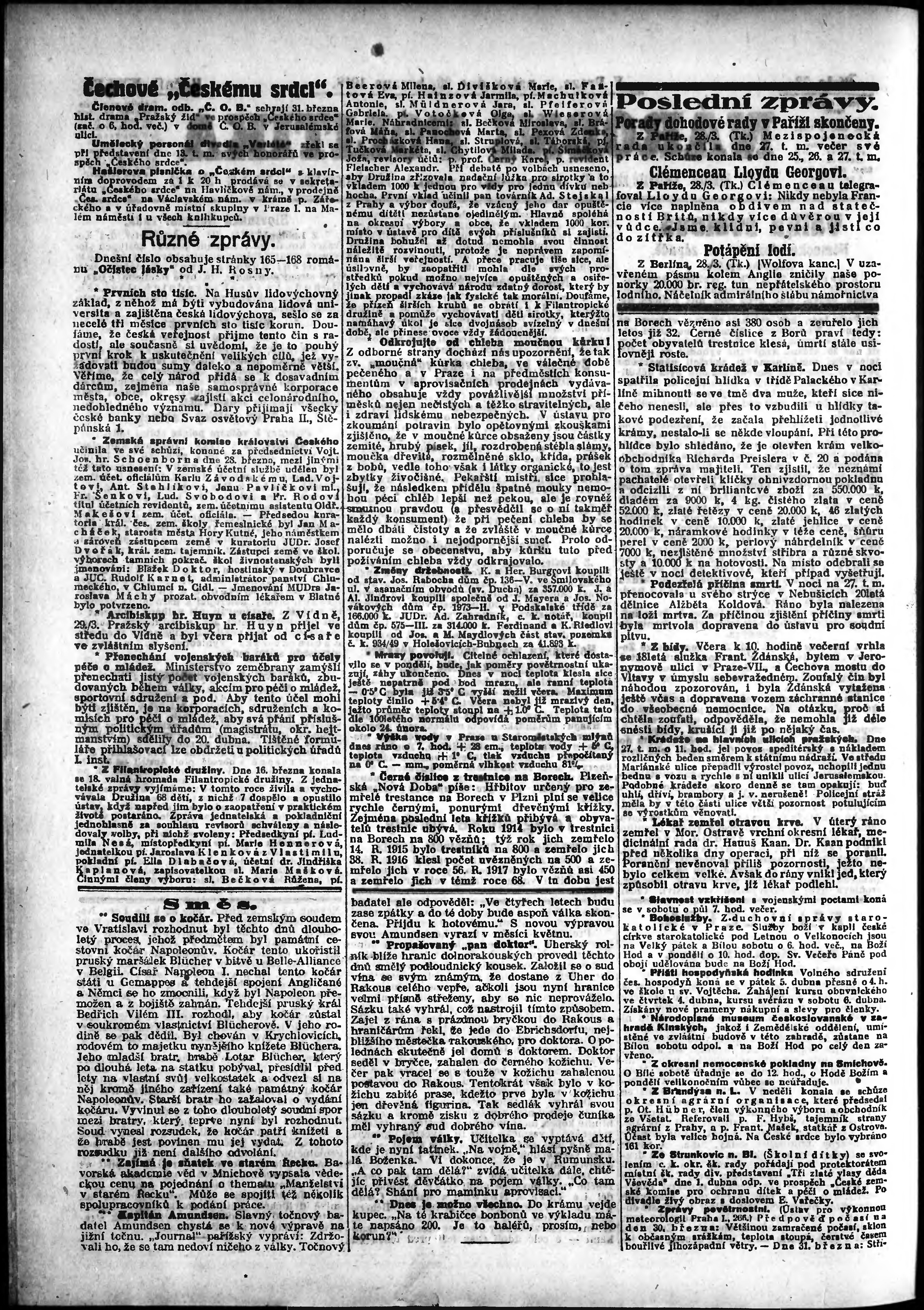* Datum vydání výtisku: 29.3.1918 Číslo výtisku: 73 Poznámky k výtisku: odpolední vydání;