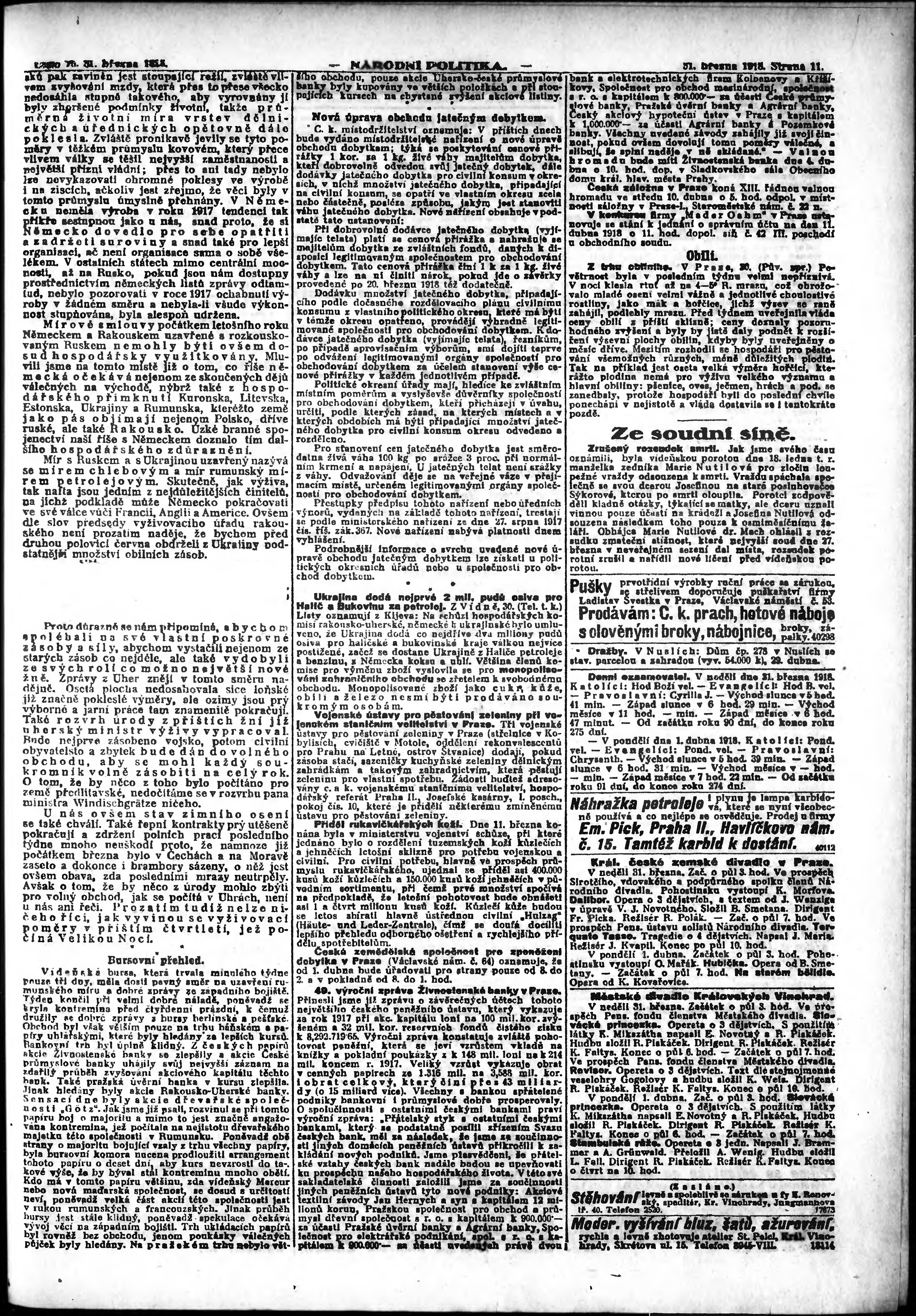 * Datum vydání výtisku: 31.3.1918 Číslo výtisku: 75 Poznámky k výtisku: ranní vydání;