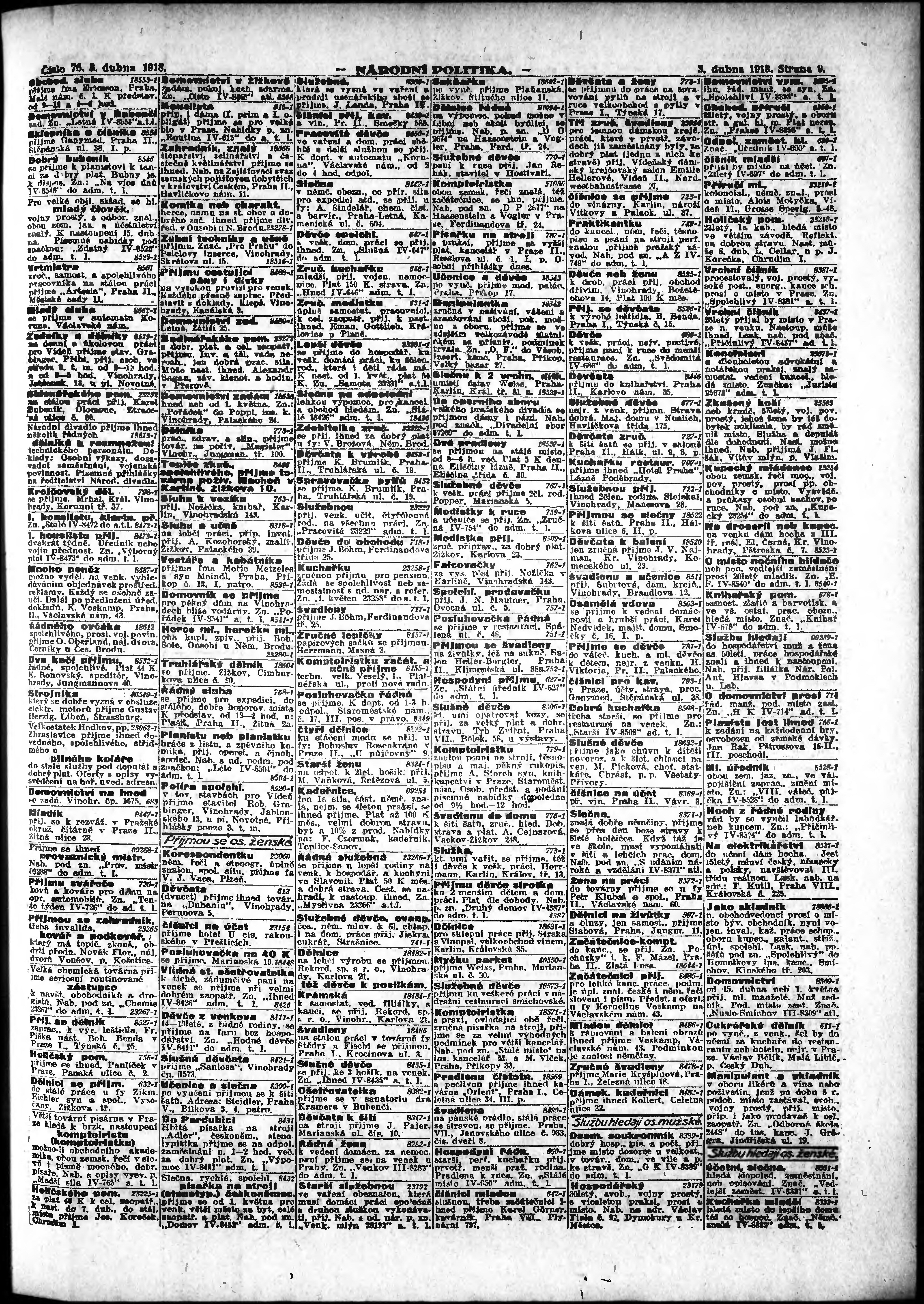 * Datum vydání výtisku: 3.4.1918 Číslo výtisku: 76 Poznámky k výtisku: ranní vydání; vydání pro Prahu;