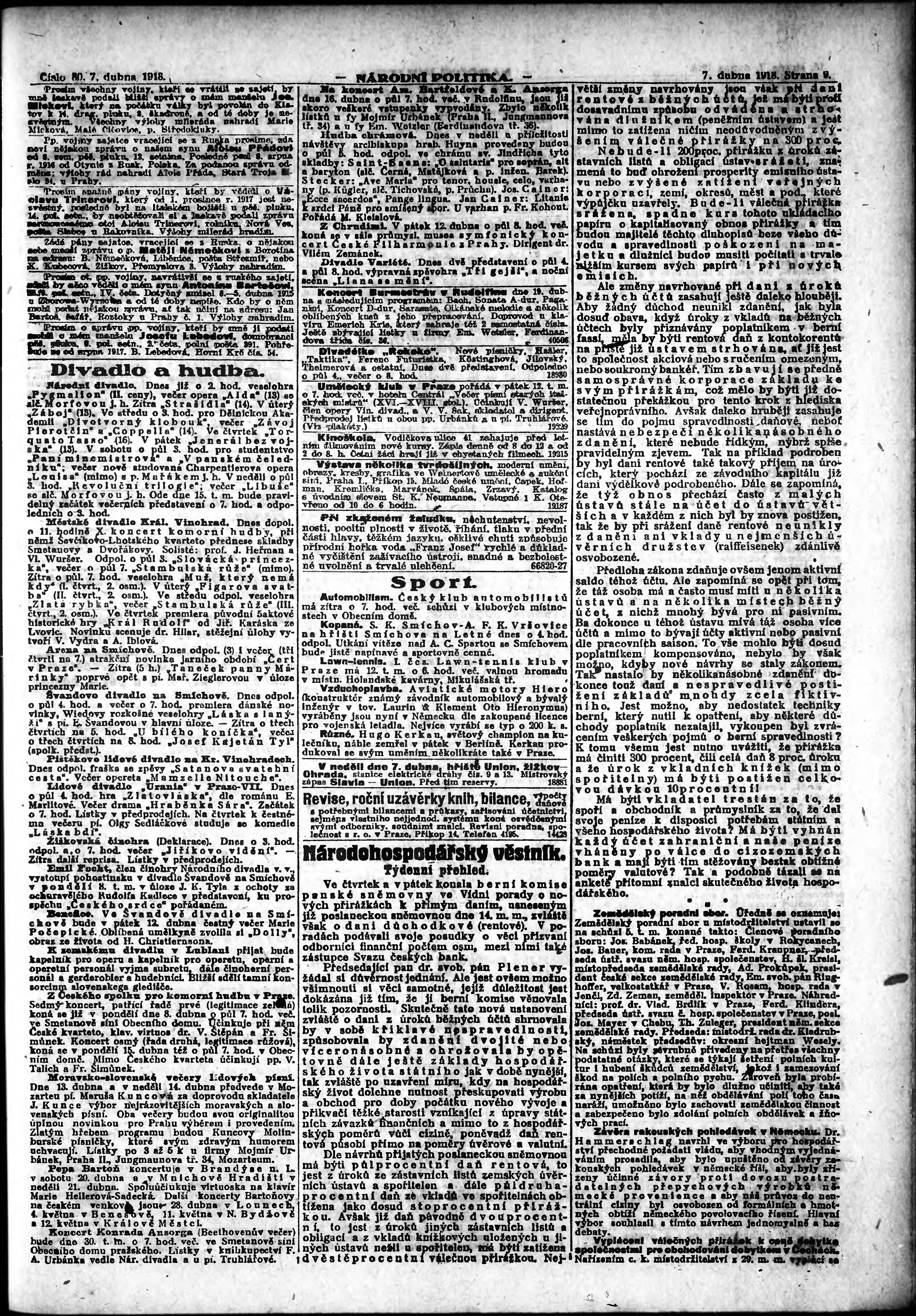 * Datum vydání výtisku: 7.4.1918 Číslo výtisku: 80 Poznámky k výtisku: ranní vydání;