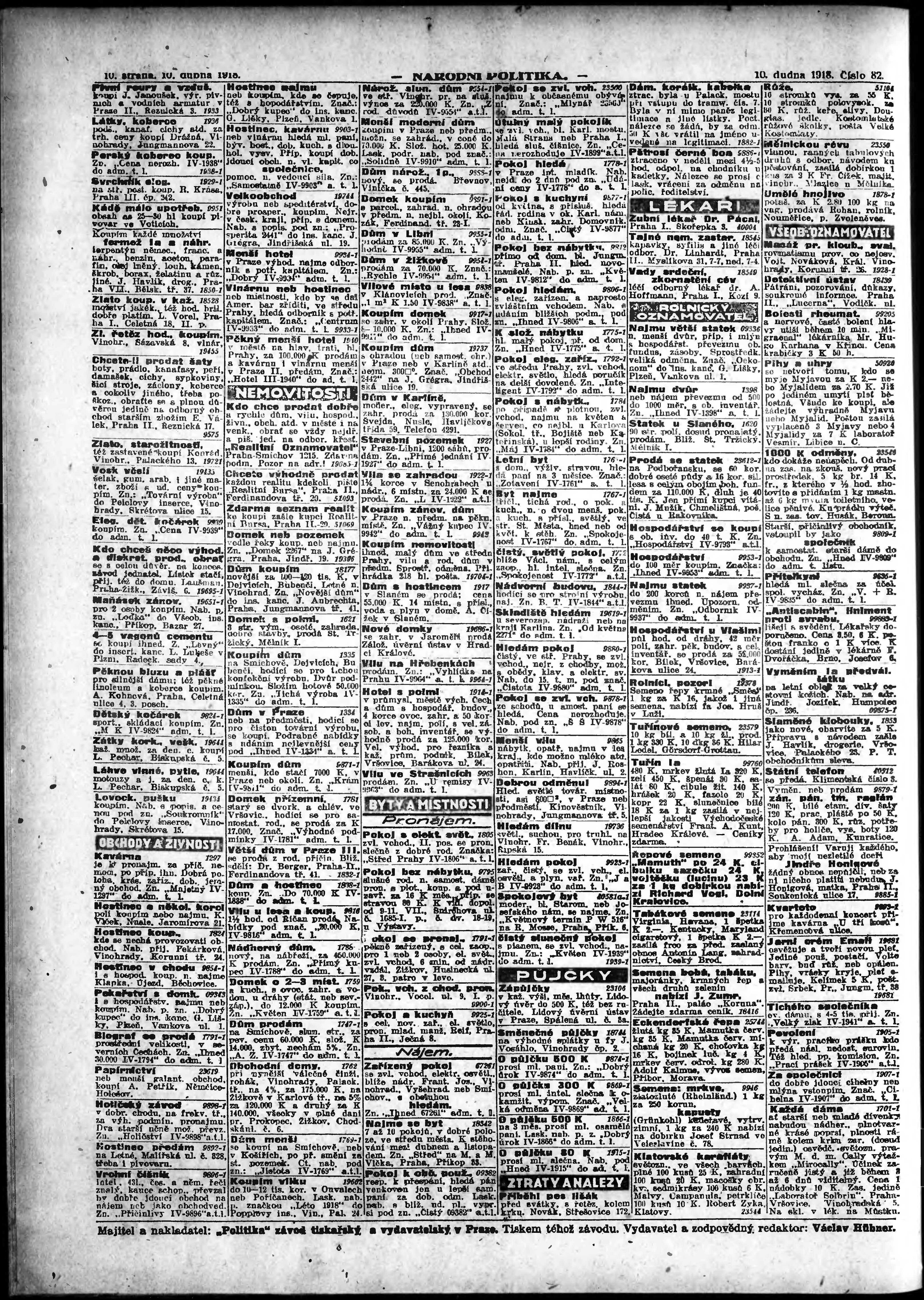* Datum vydání výtisku: 10.4.1918 Číslo výtisku: 82 Poznámky k výtisku: ranní vydání; vydání pro Prahu;