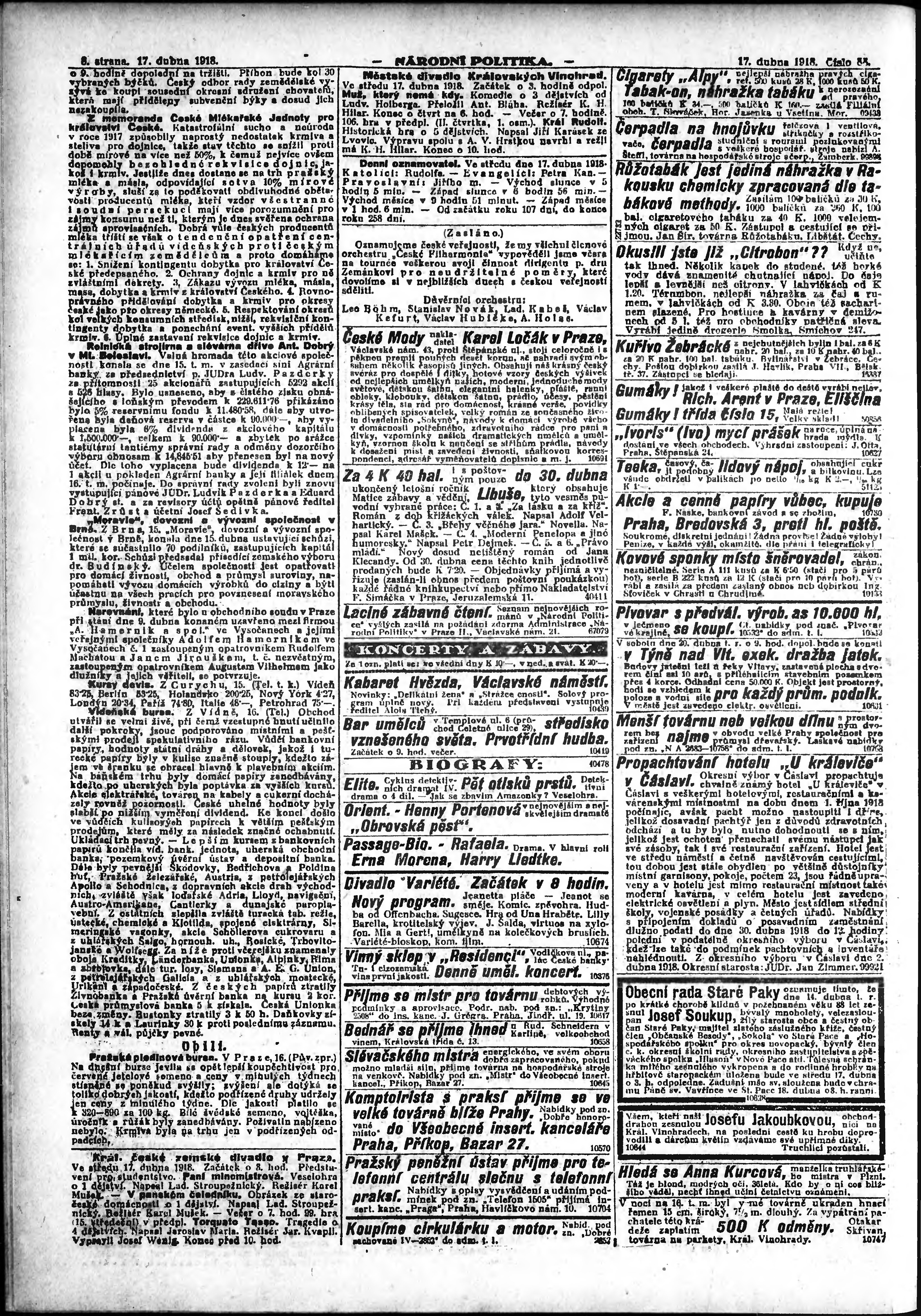 ranní vydání; vydání pro Prahu;