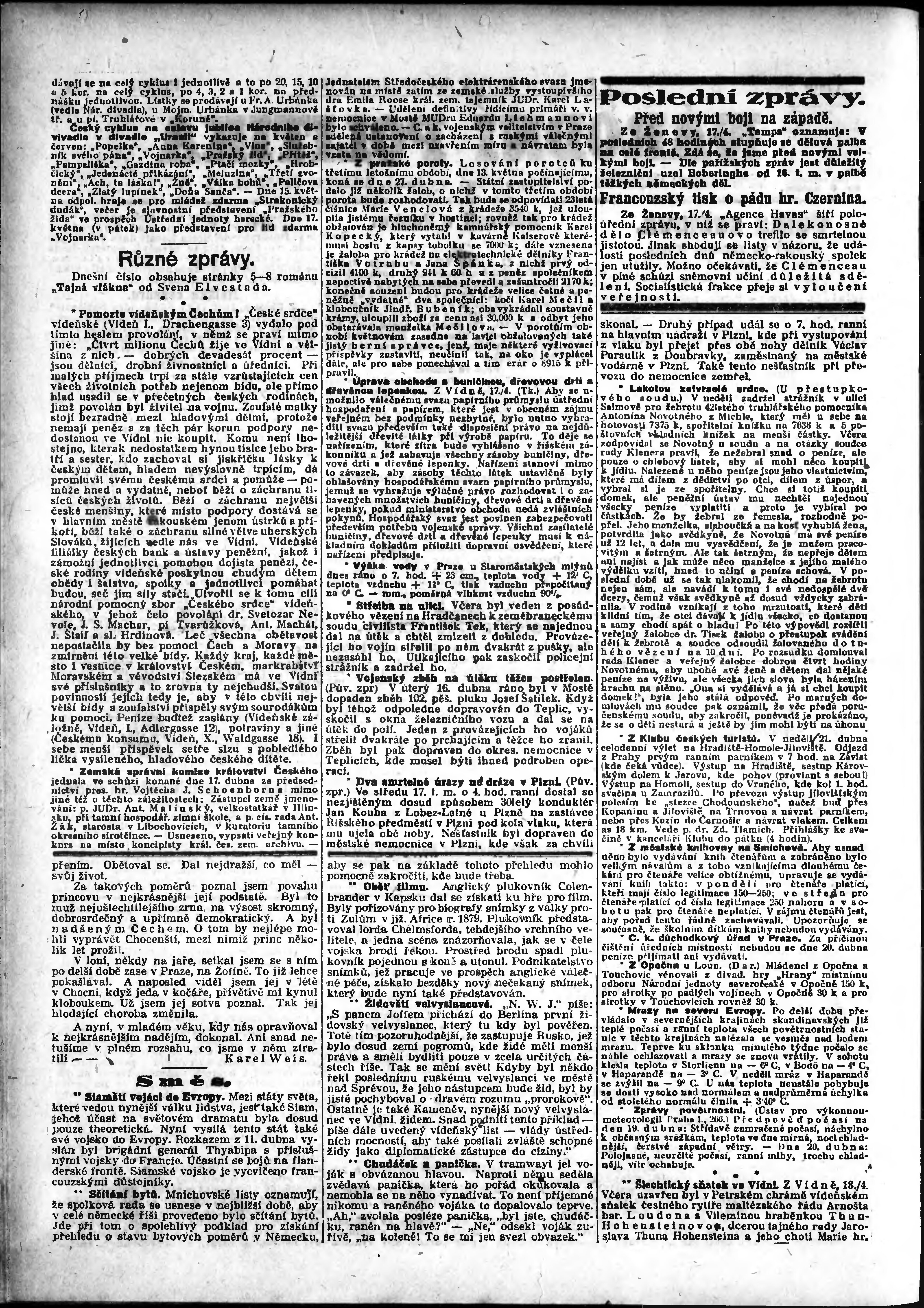 * Datum vydání výtisku: 18.4.1918 Číslo výtisku: 89 Poznámky k výtisku: odpolední vydání;