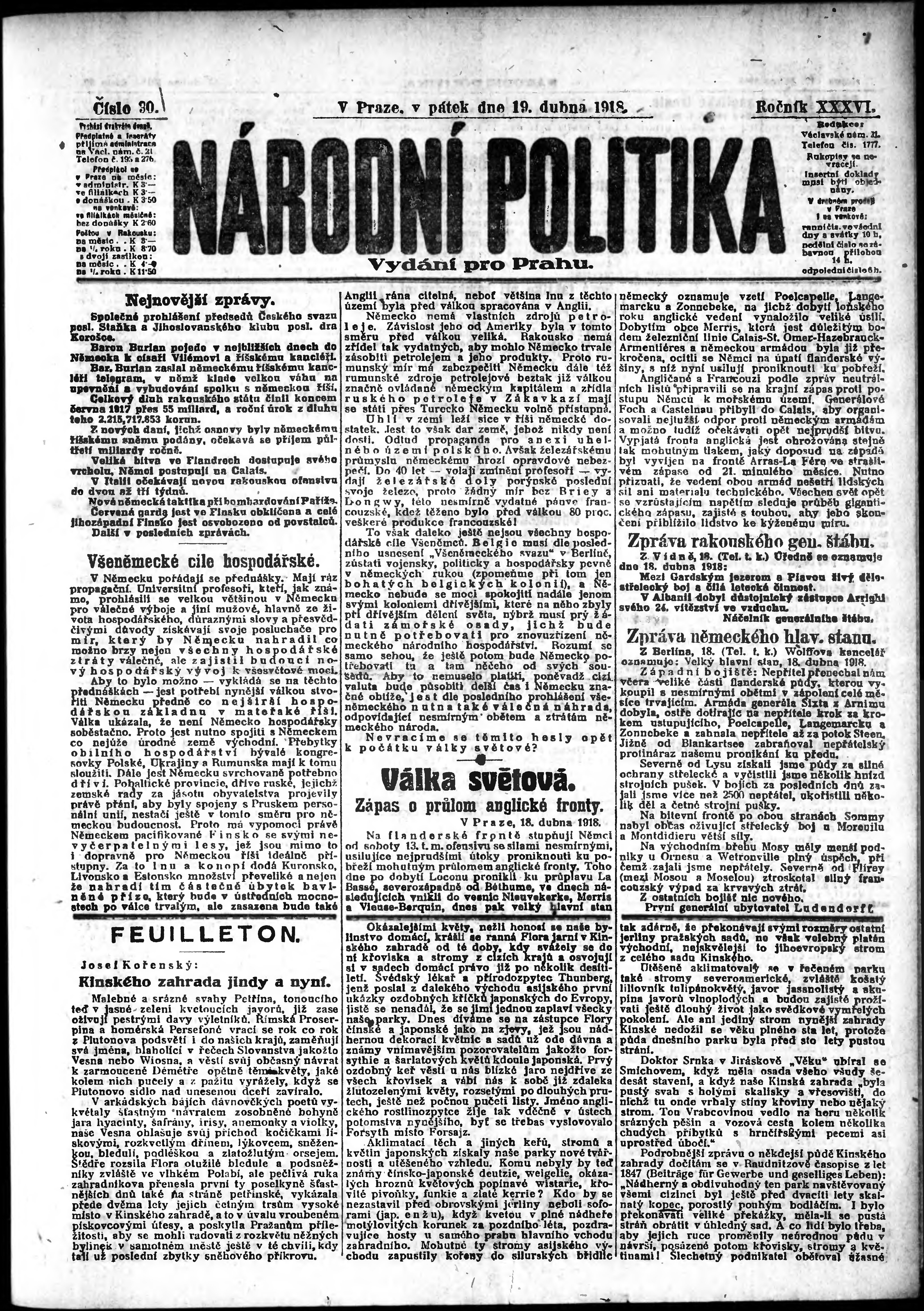 Datum vydání výtisku: 19.4.1918