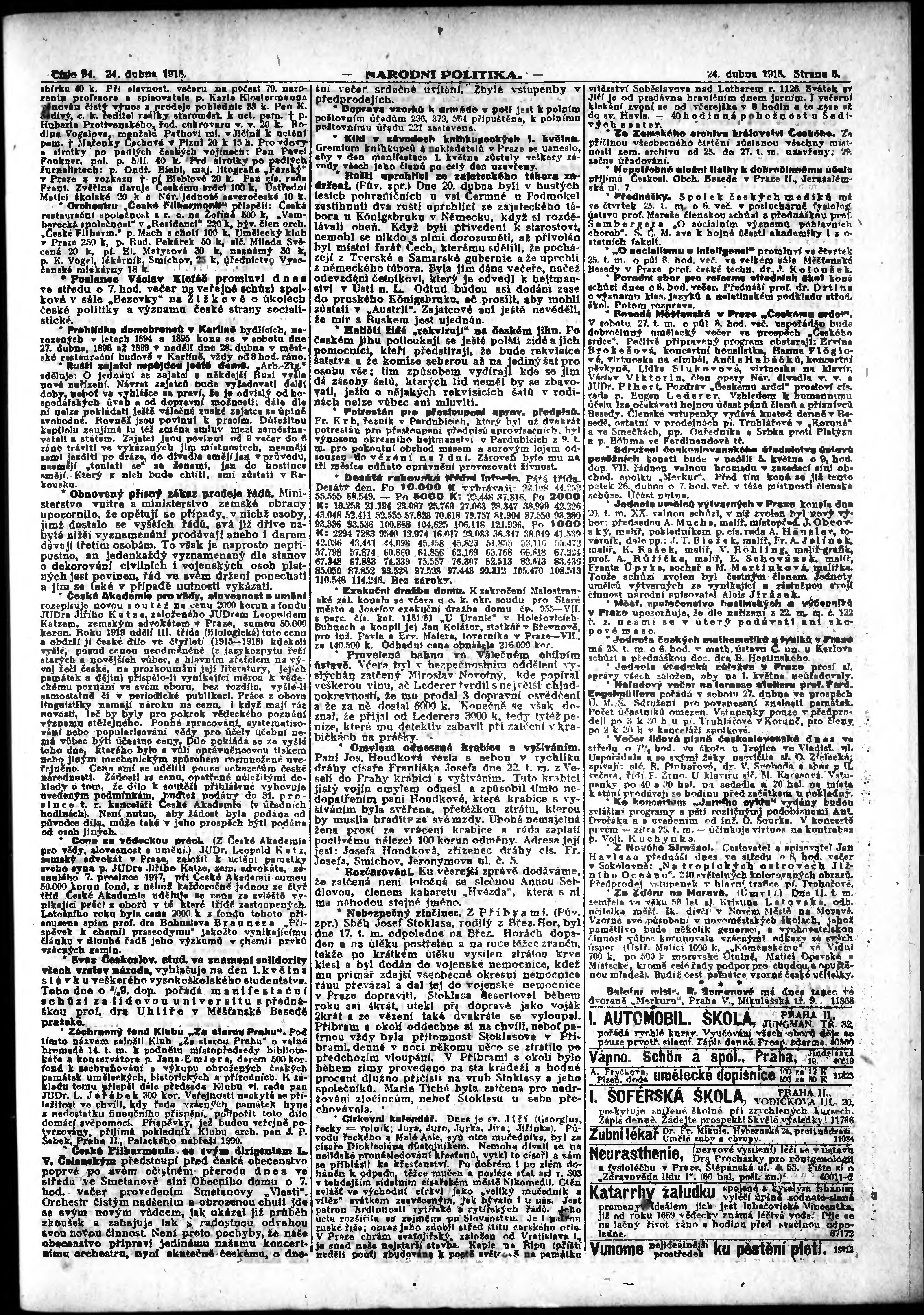 ranní vydání; vydání pro Prahu;