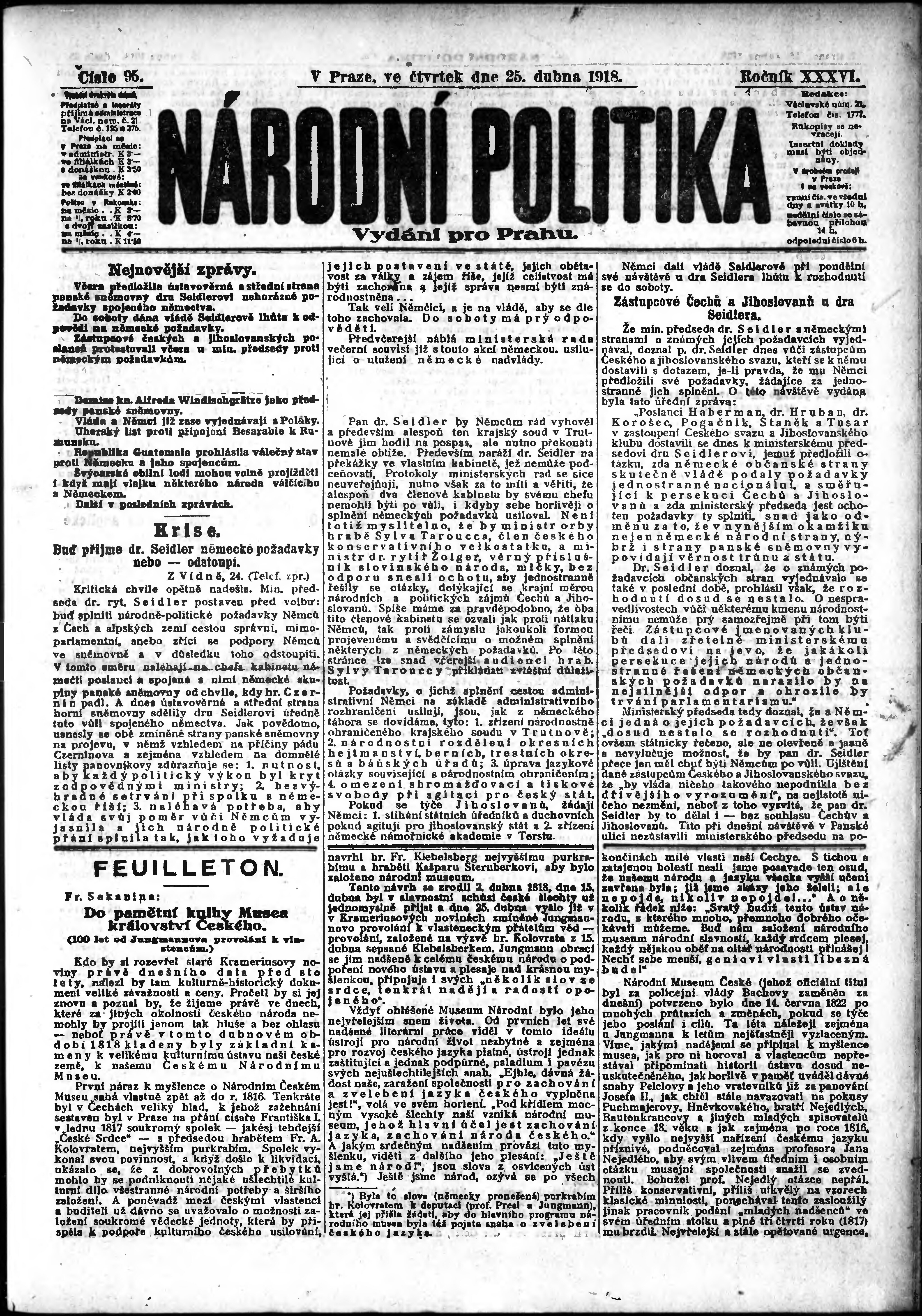 ranní vydání; vydání pro Prahu;