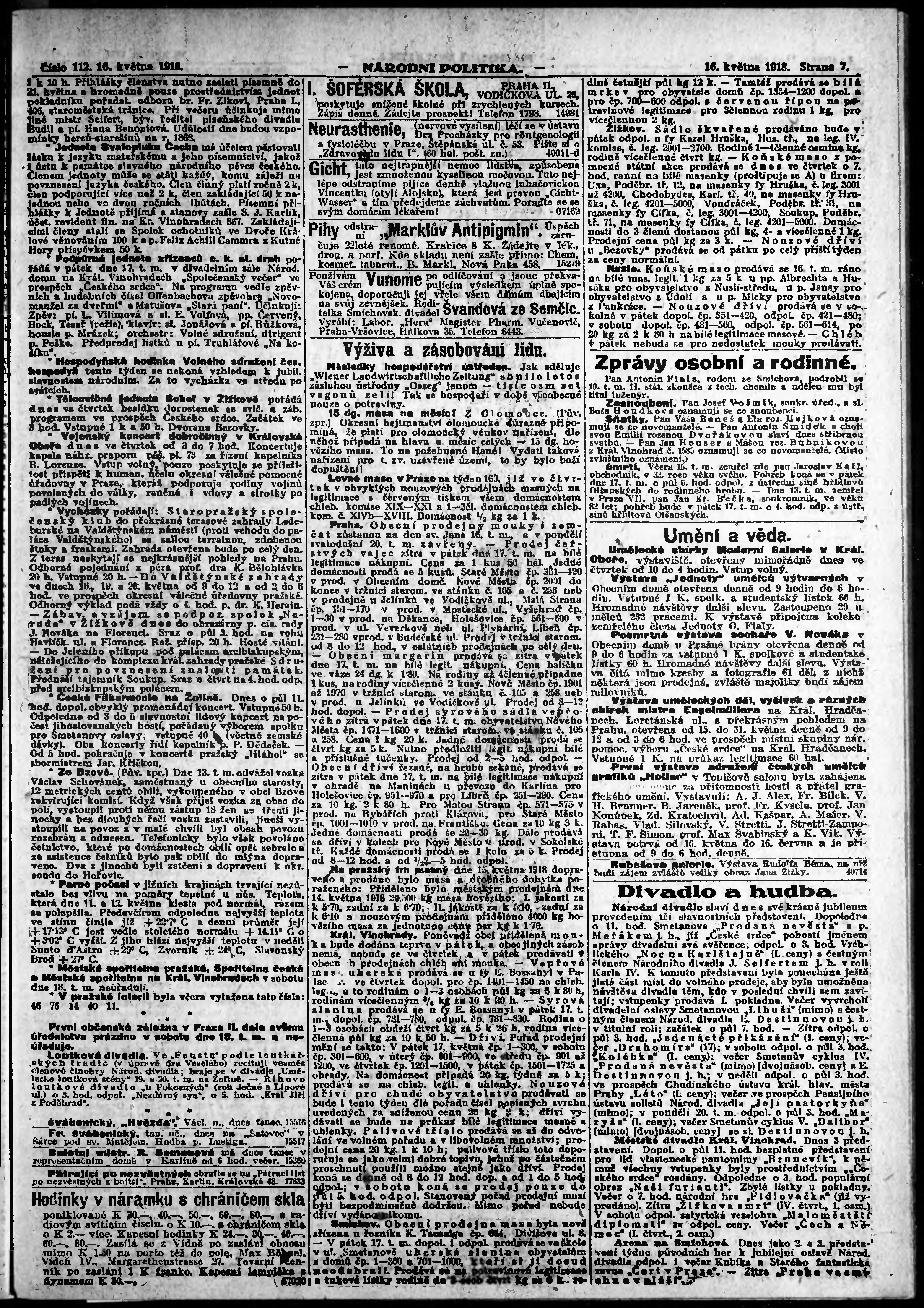 * Datum vydání výtisku: 16.5.1918 Číslo výtisku: 112 Poznámky k výtisku: ranní vydání;