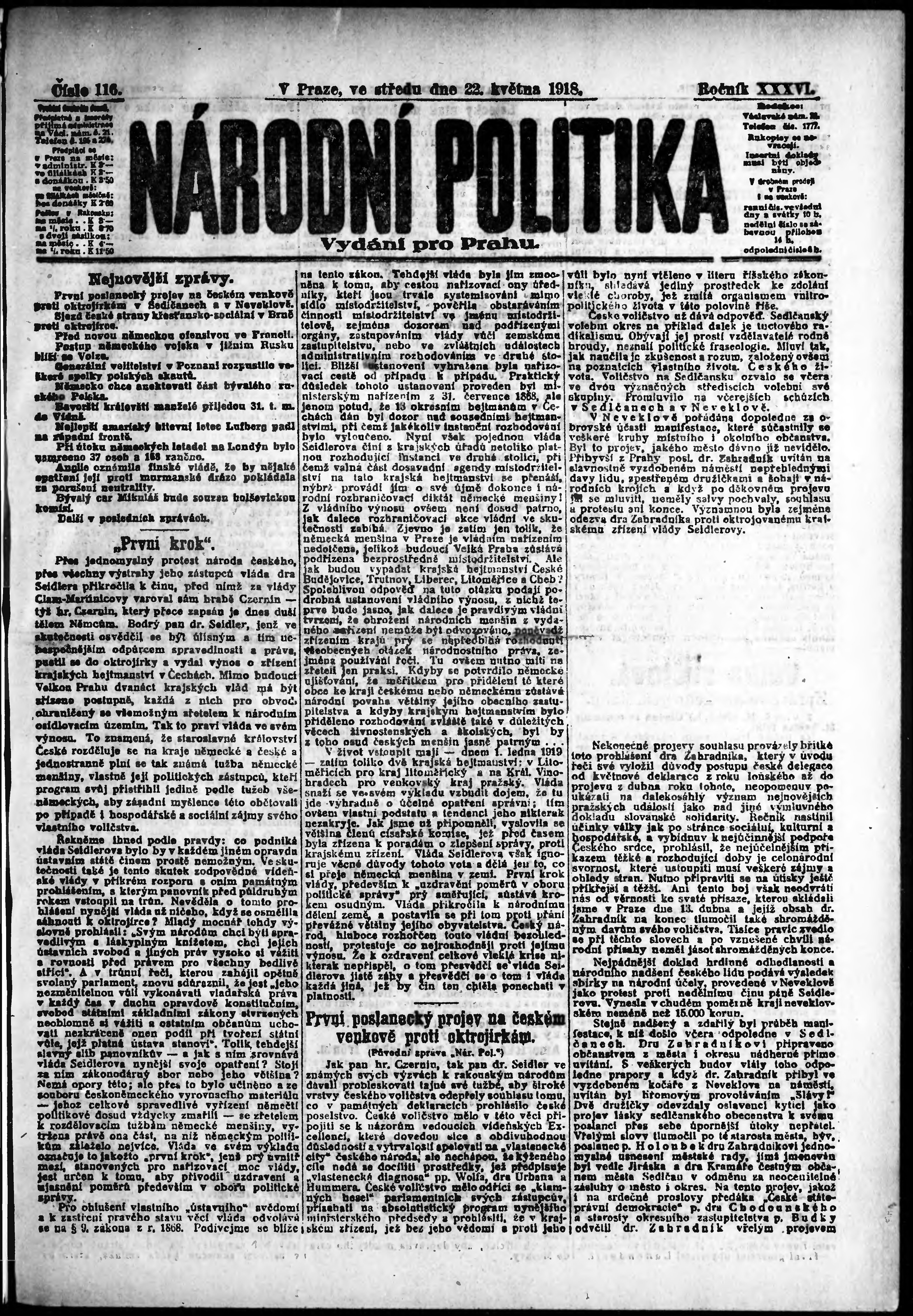 ranní vydání; vydání pro Prahu;