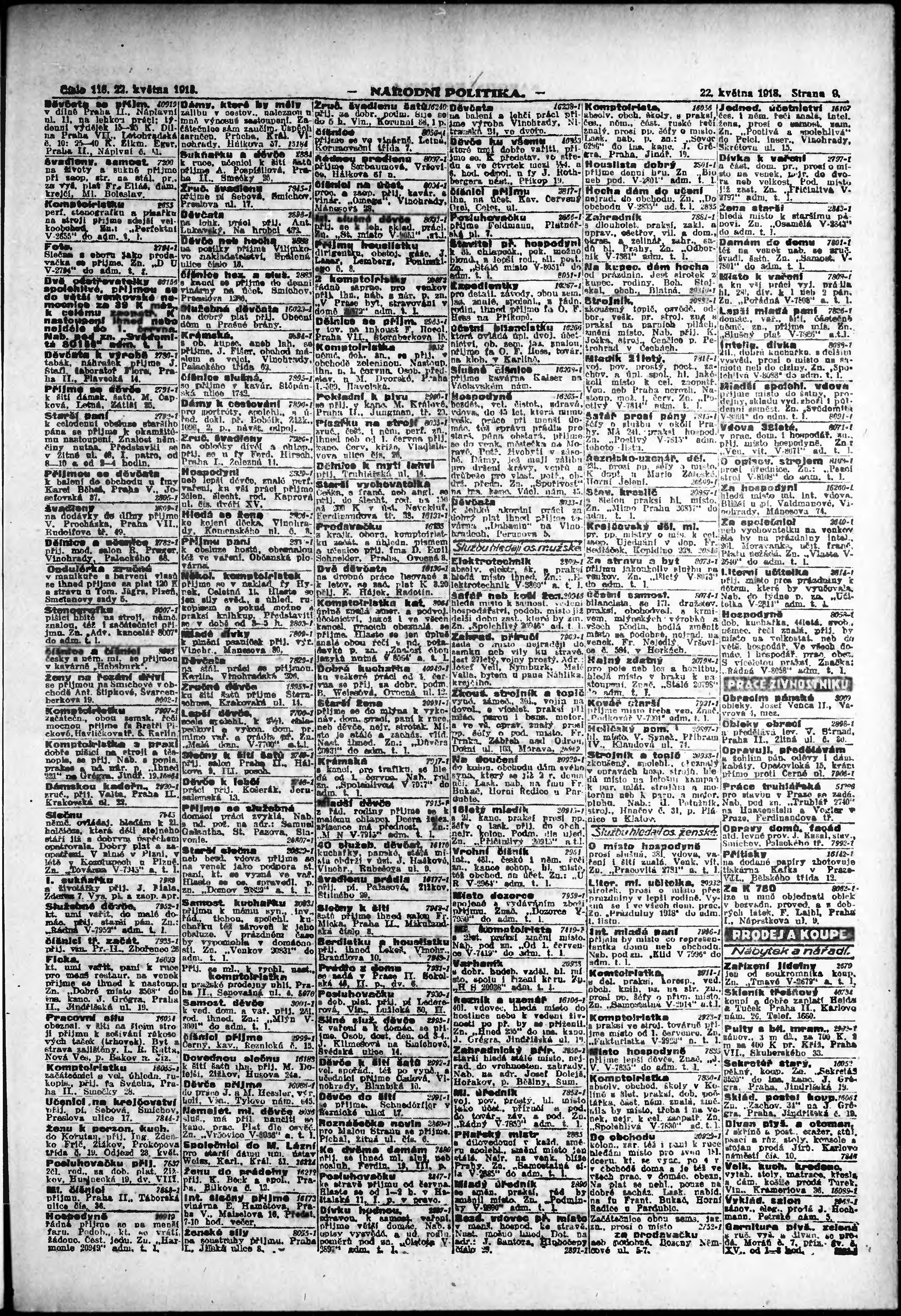 * Datum vydání výtisku: 22.5.1918 Číslo výtisku: 116 Poznámky k výtisku: ranní vydání; vydání pro Prahu;
