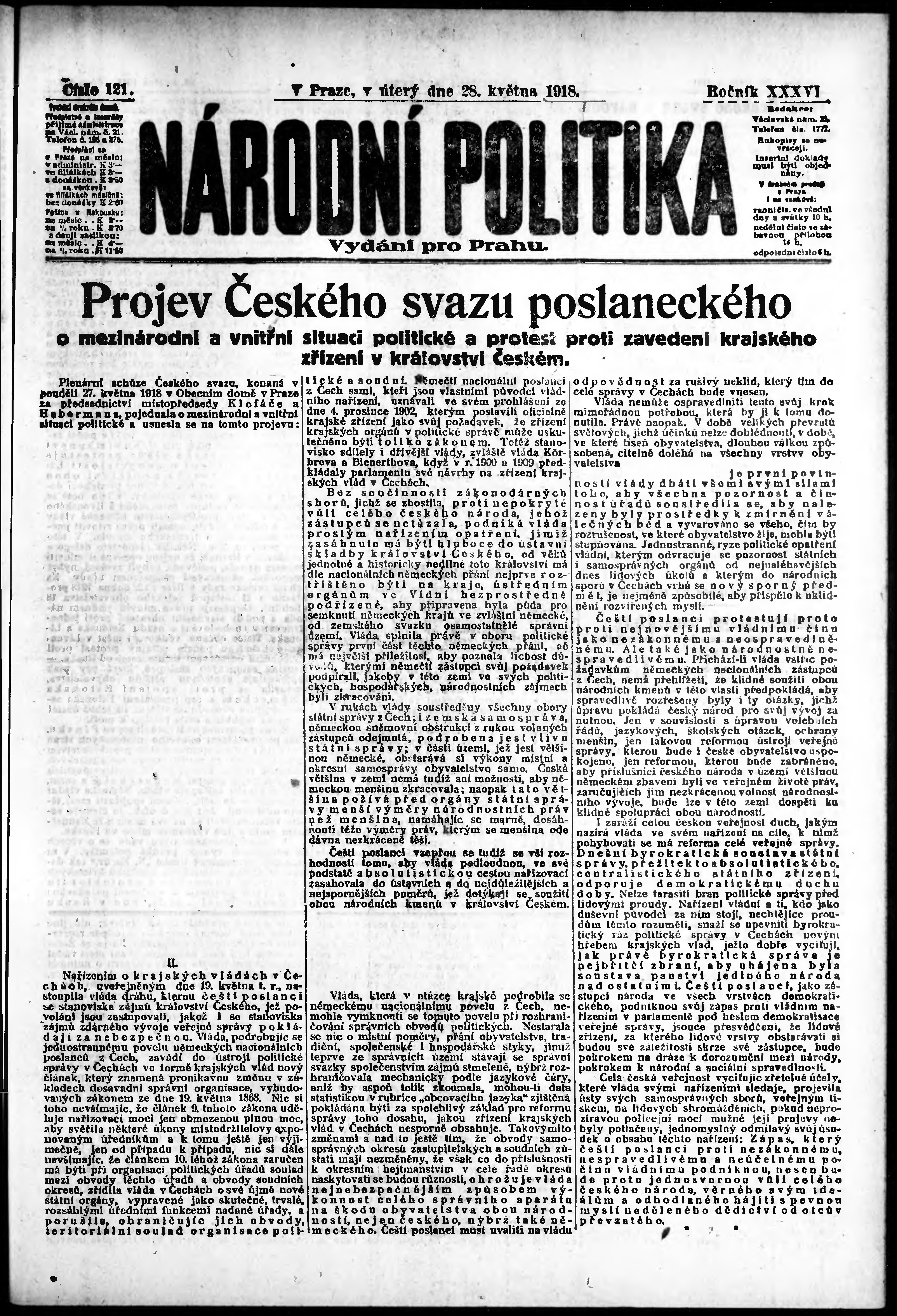 ranní vydání; vydání pro Prahu;