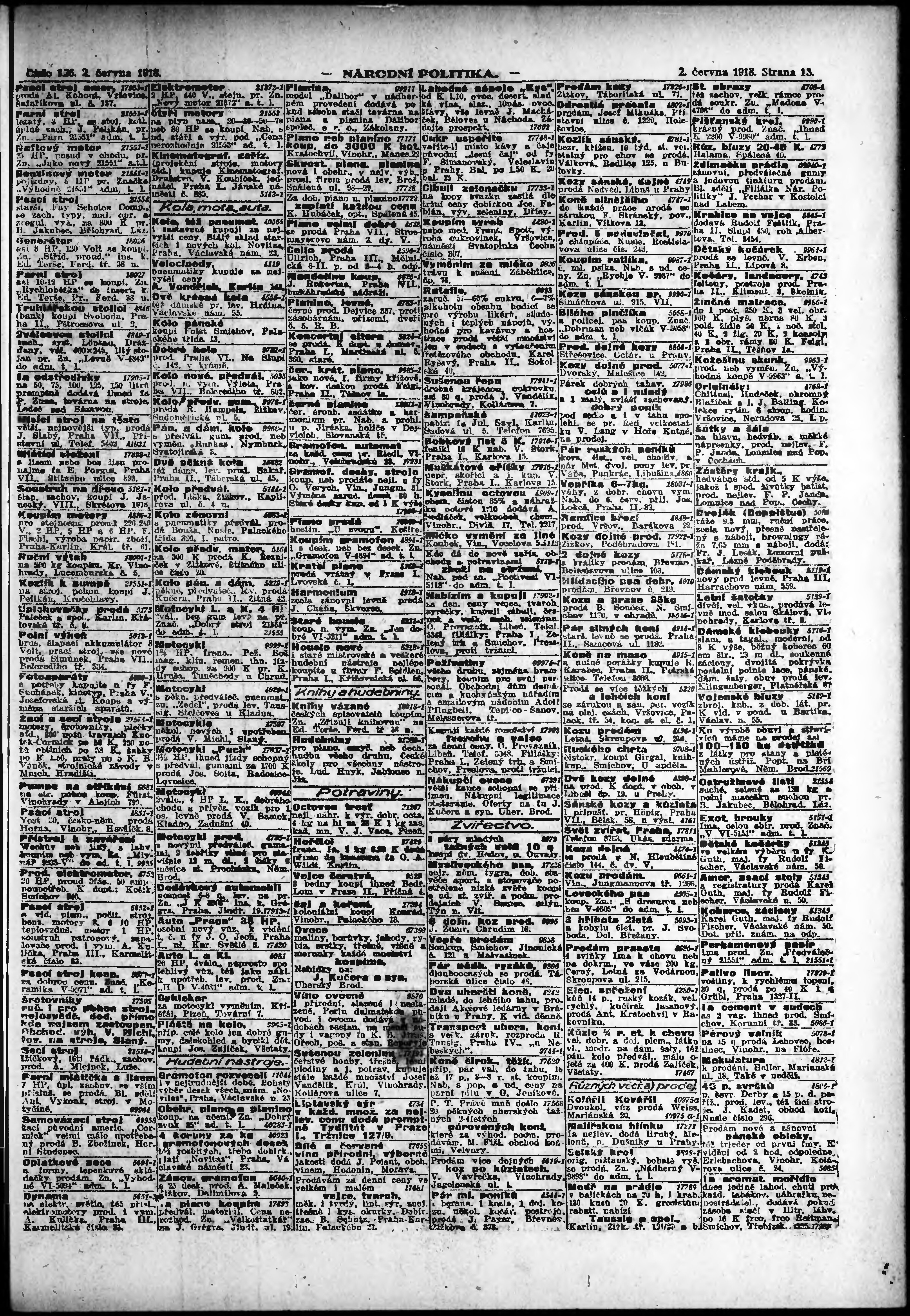 * Datum vydání výtisku: 2.6.1918 Číslo výtisku: 126 Poznámky k výtisku: ranní vydání;