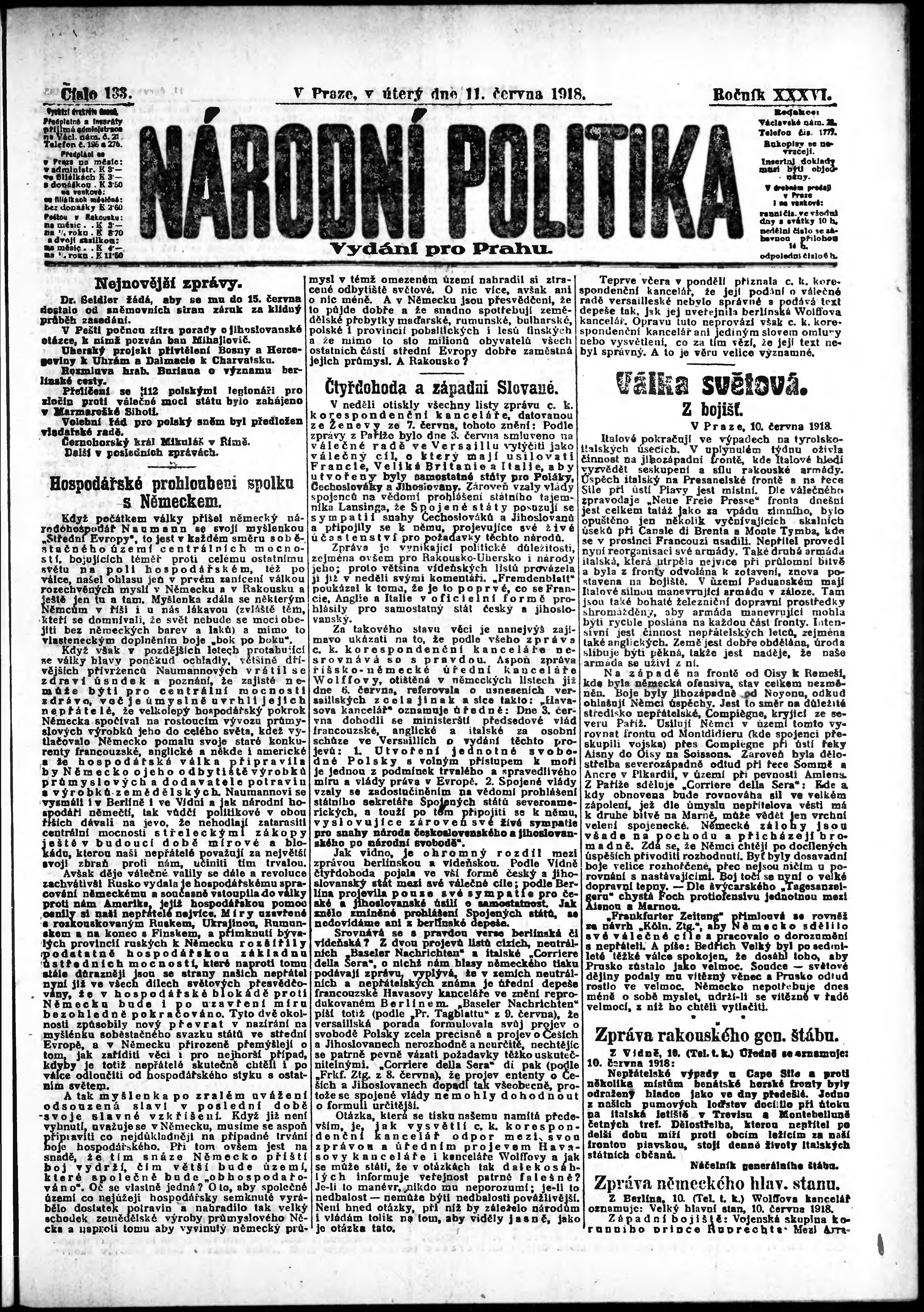 ranní vydání; vydání pro Prahu;