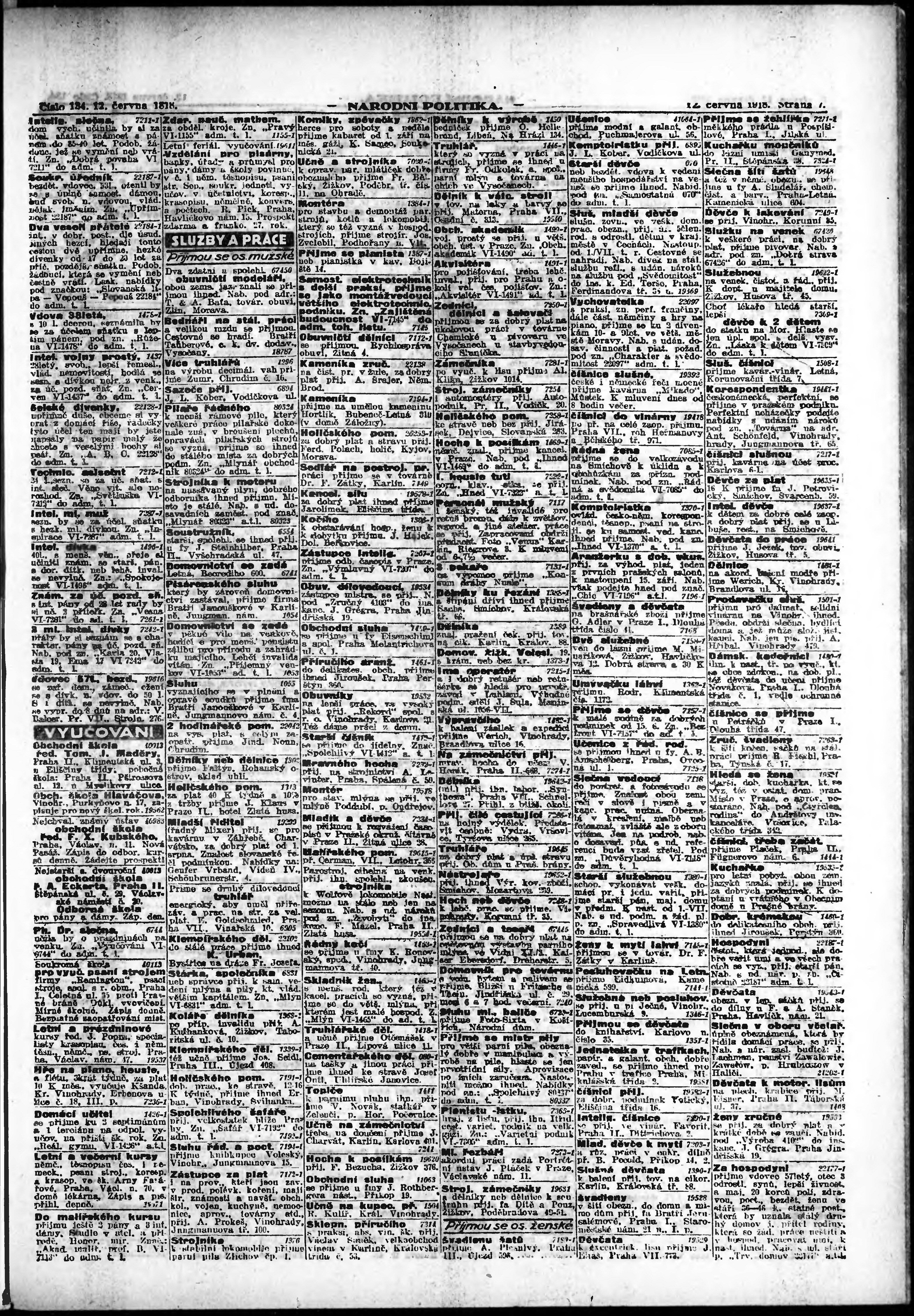 * Datum vydání výtisku: 12.6.1918 Číslo výtisku: 134 Poznámky k výtisku: ranní vydání; vydání pro Prahu;