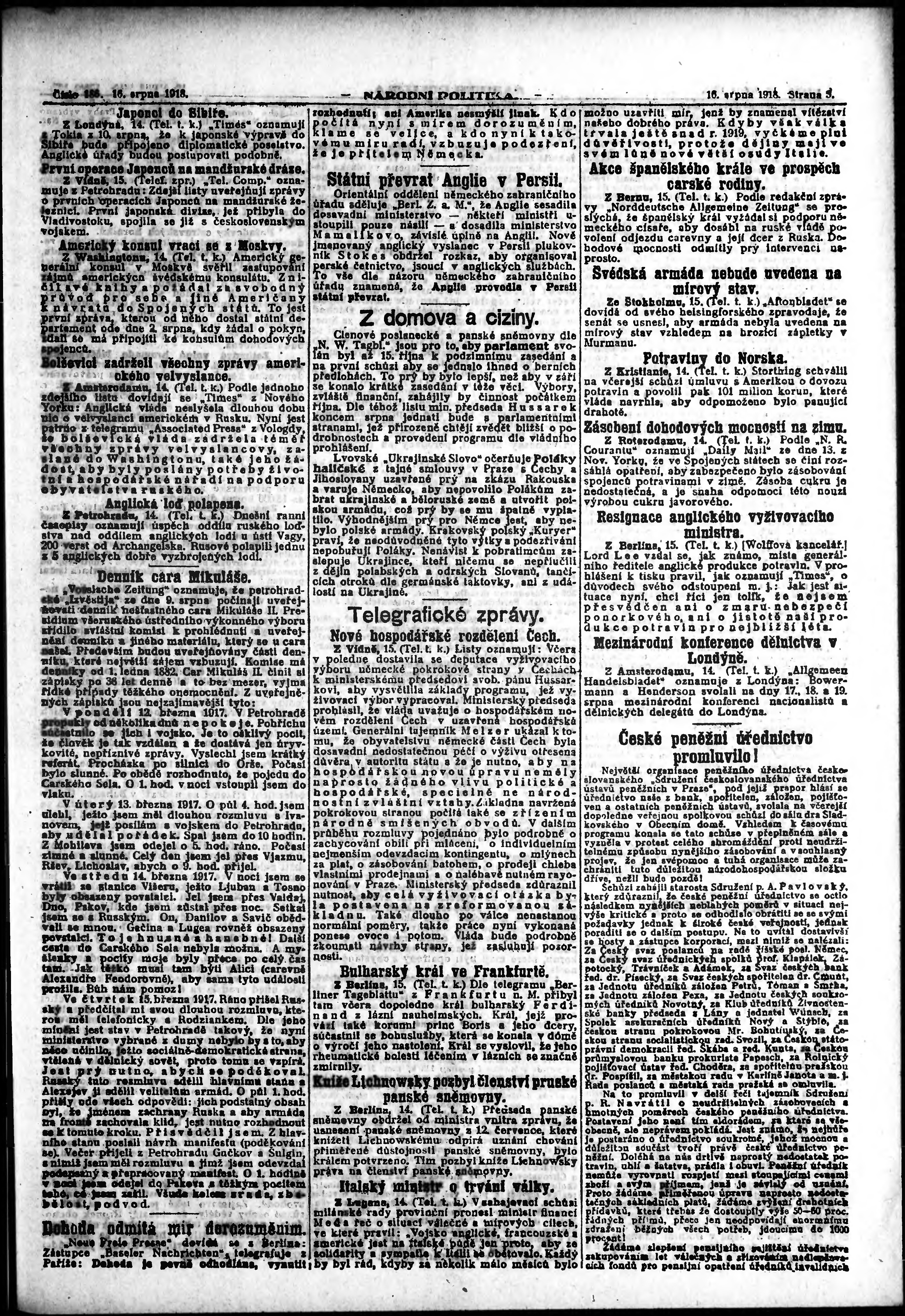 * Datum vydání výtisku: 16.8.1918 Číslo výtisku: 186 Poznámky k výtisku: ranní vydání; vydání pro Prahu;