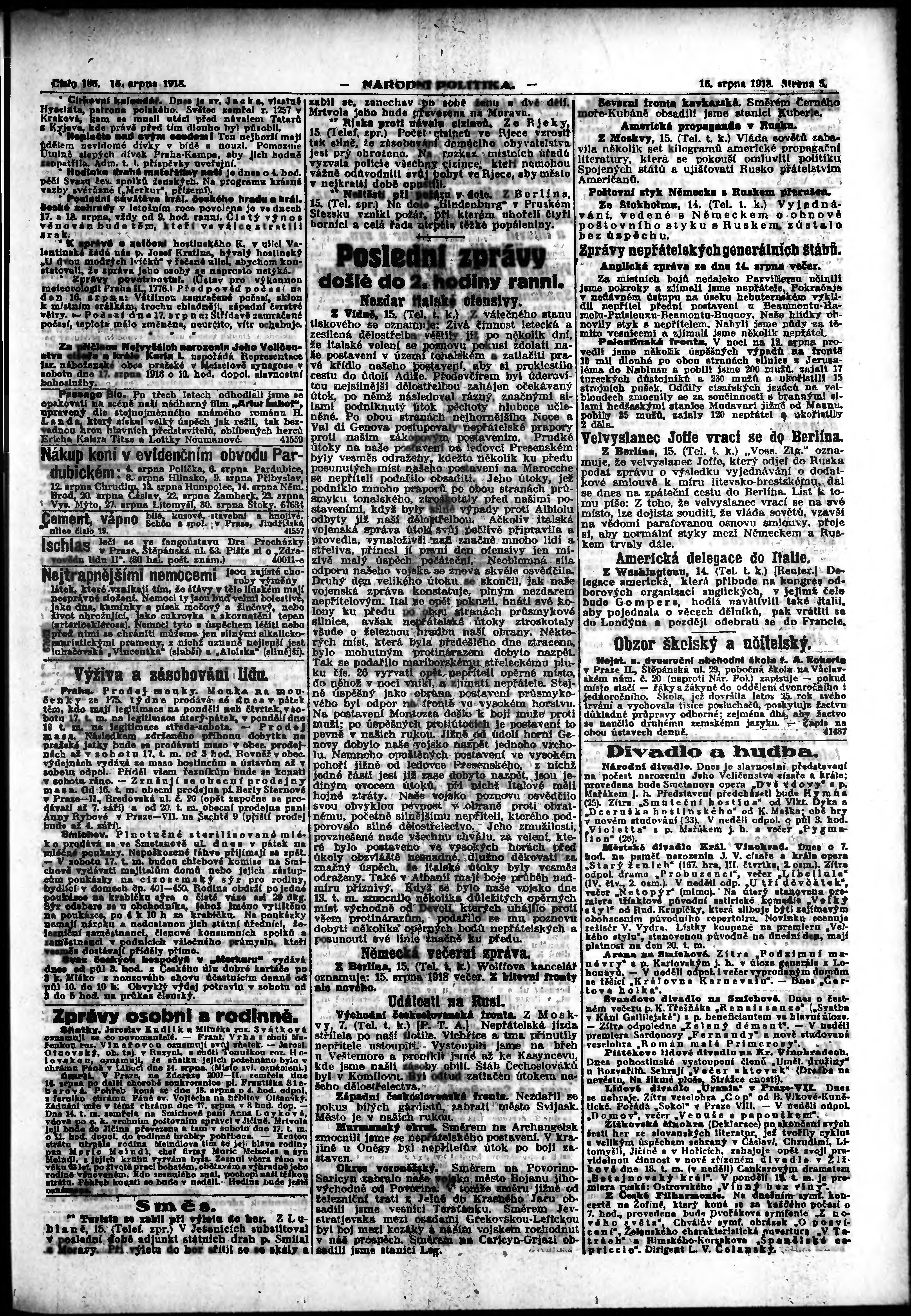 * Datum vydání výtisku: 16.8.1918 Číslo výtisku: 186 Poznámky k výtisku: ranní vydání; vydání pro Prahu;
