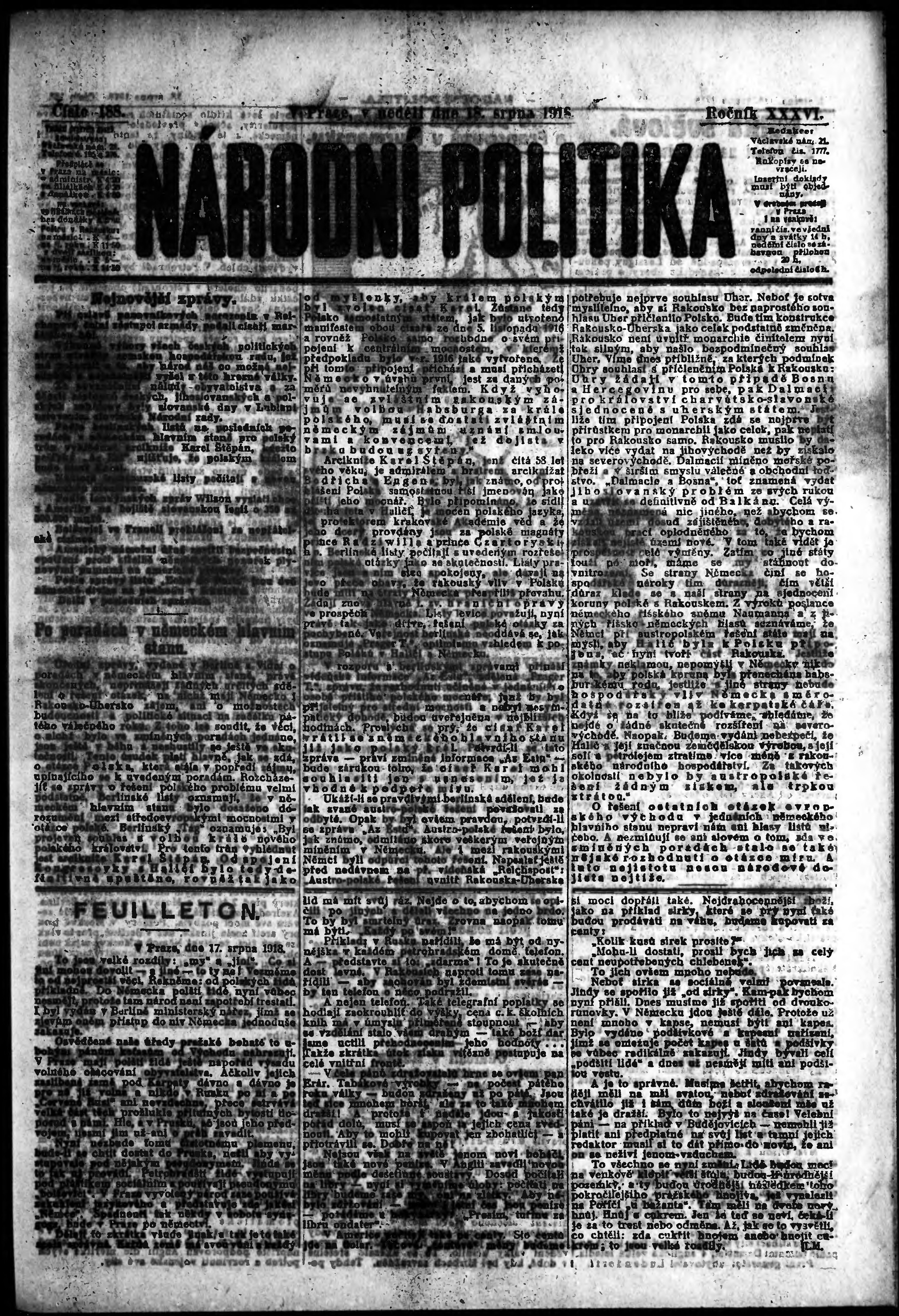 * Datum vydání výtisku: 18.8.1918 Číslo výtisku: 188 Poznámky k výtisku: ranní vydání;