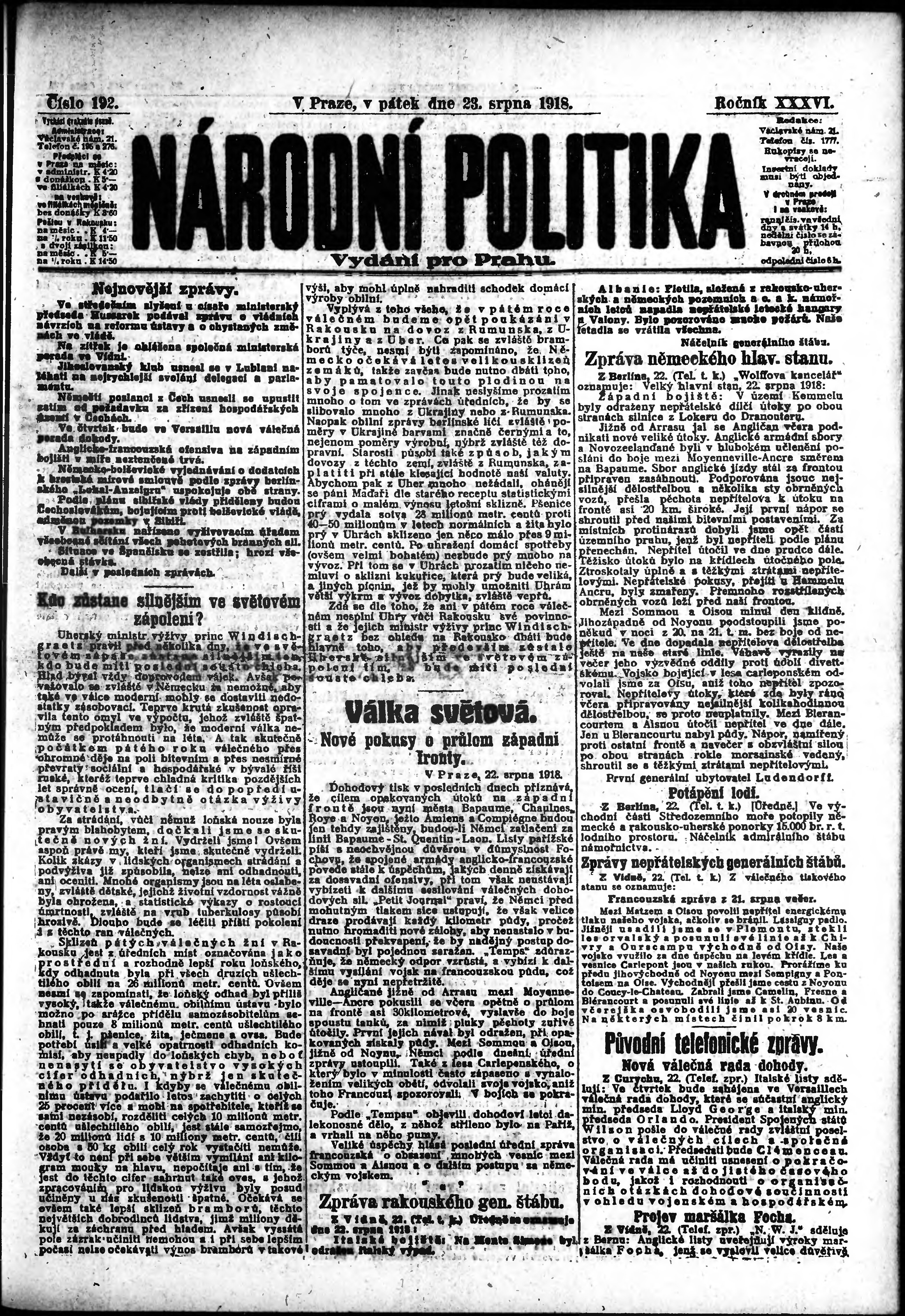ranní vydání; vydání pro Prahu;