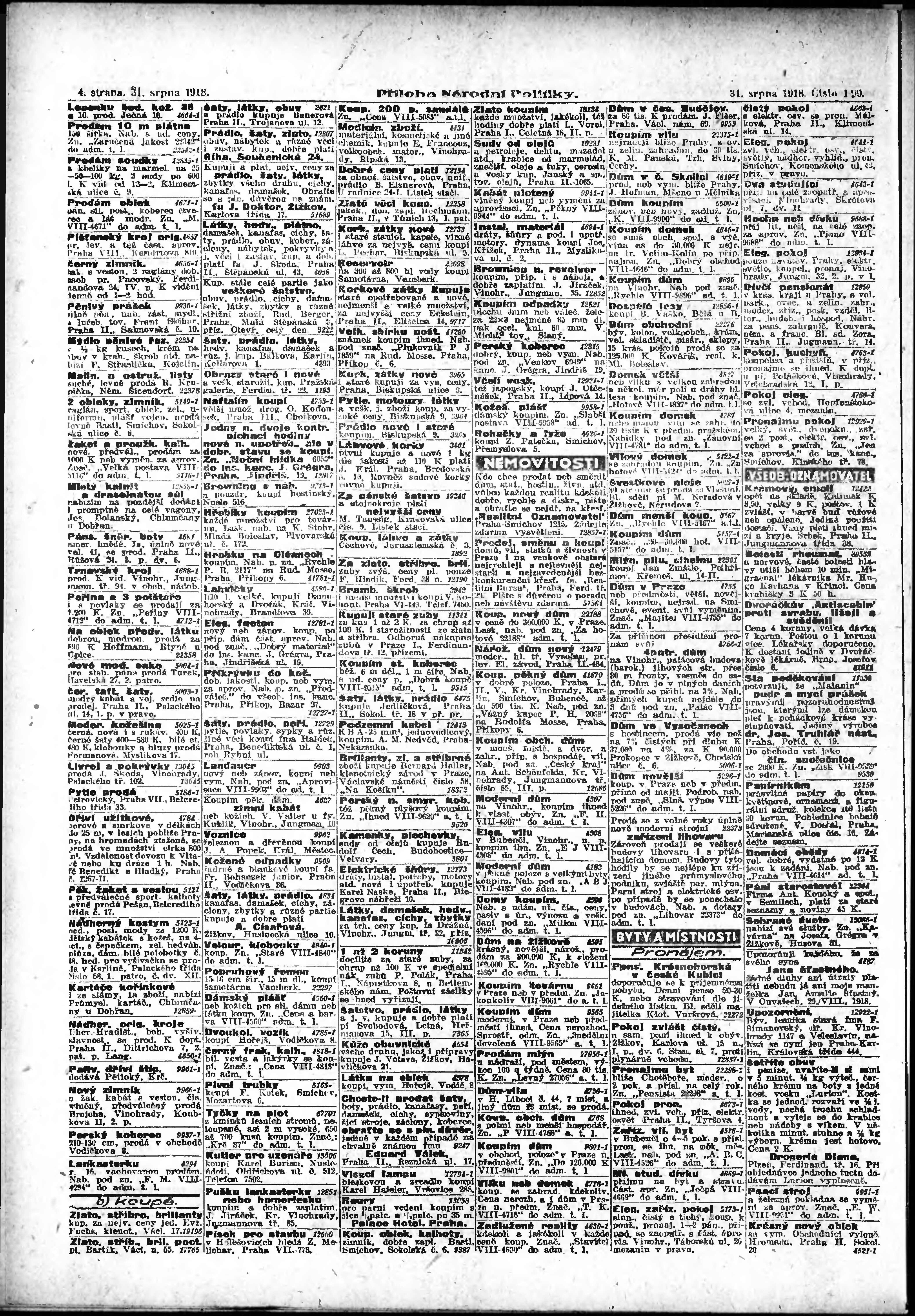 * Datum vydání výtisku: 31.8.1918 Číslo výtisku: 199 Typ výtisku: příloha