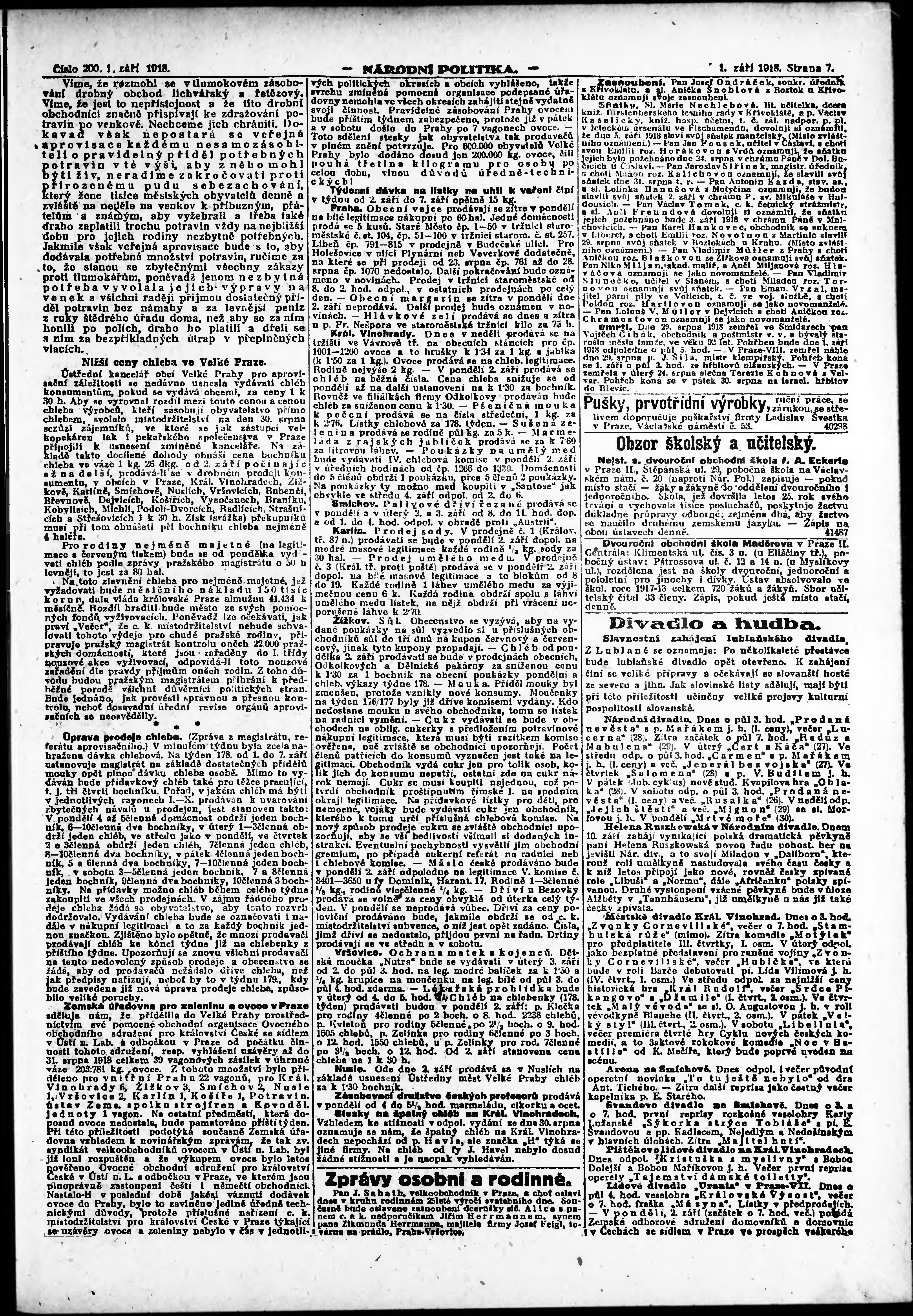 * Datum vydání výtisku: 1.9.1918 Číslo výtisku: 200 Poznámky k výtisku: ranní vydání;