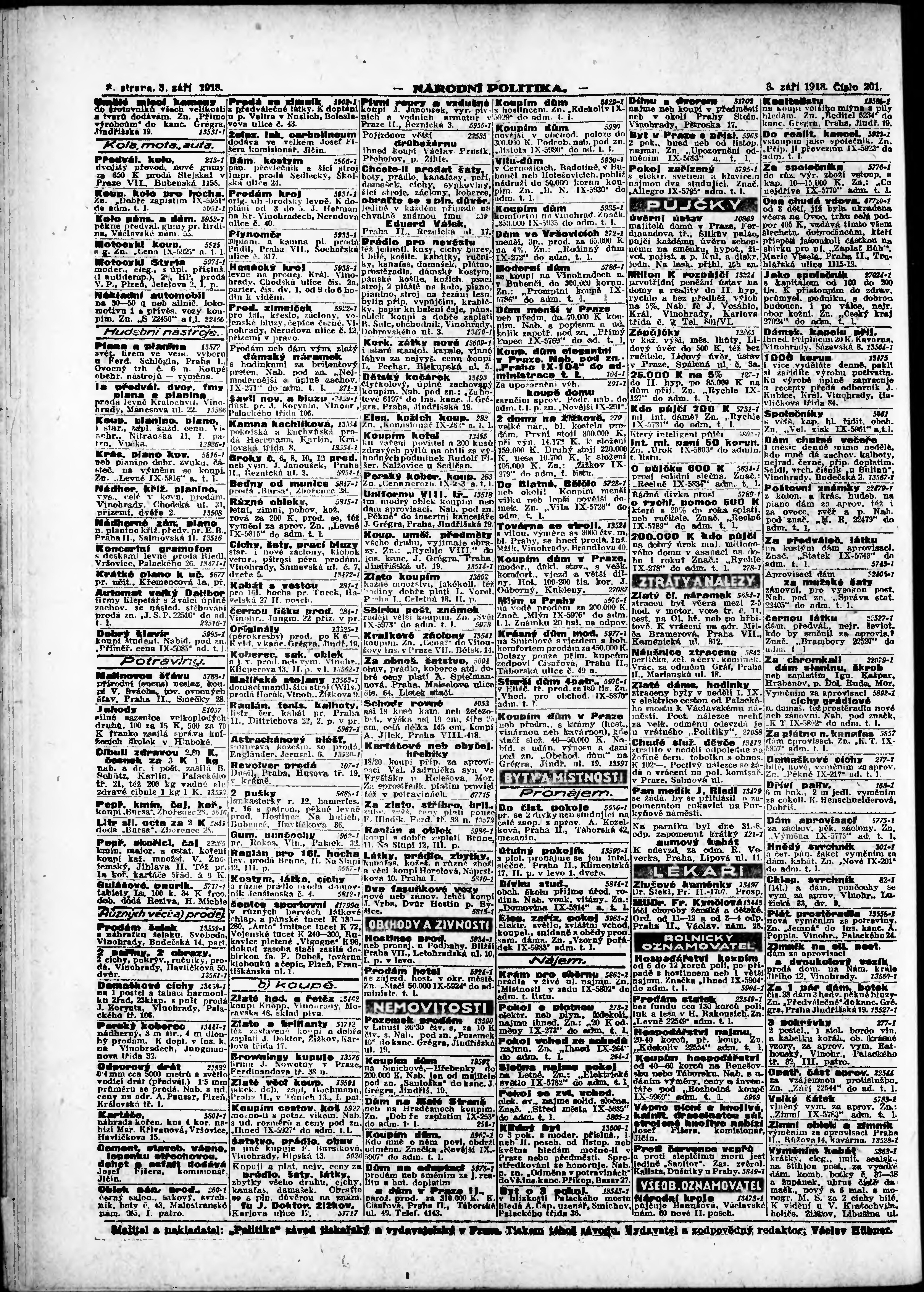 ranní vydání; vydání pro Prahu;