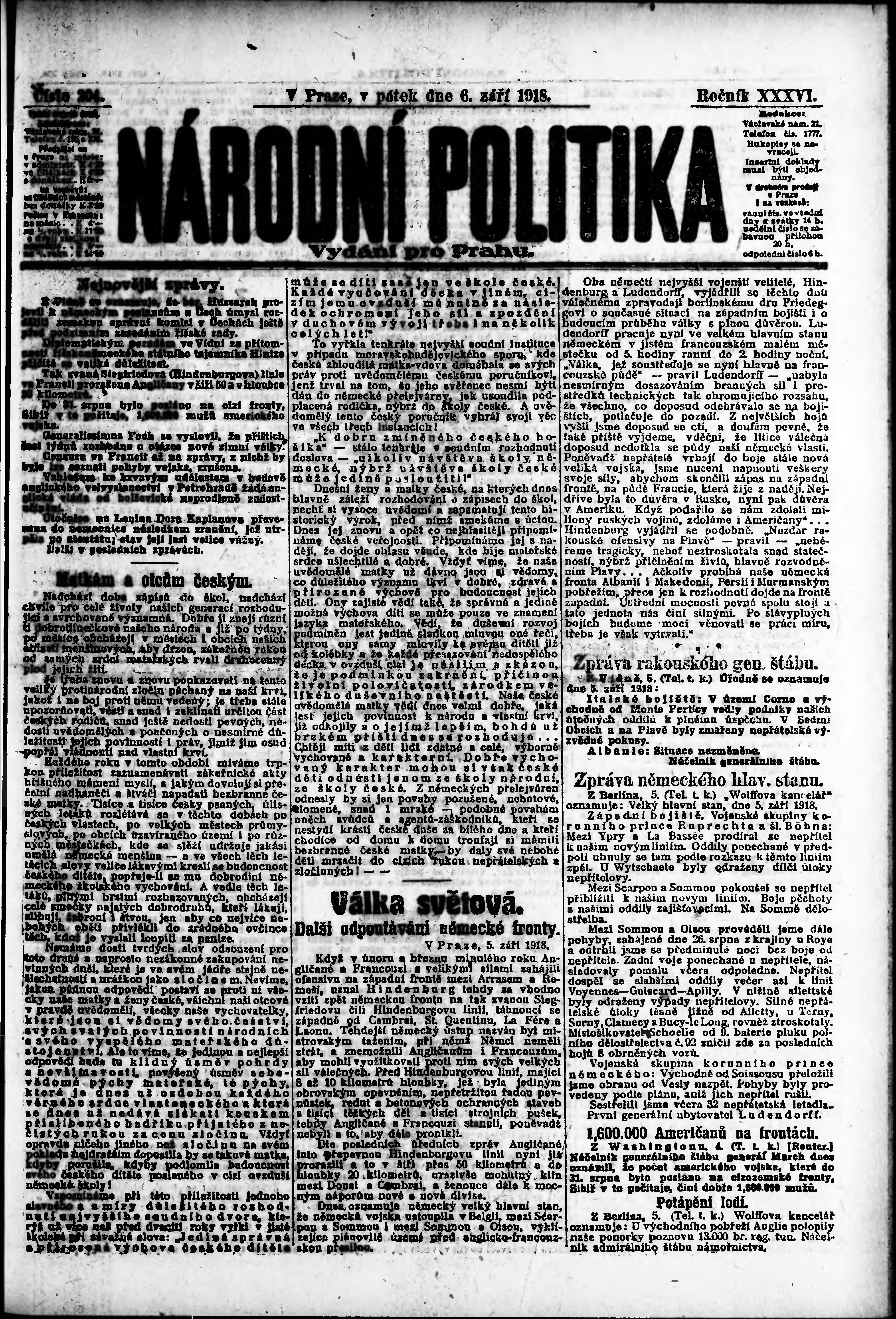 ranní vydání; vydání pro Prahu;
