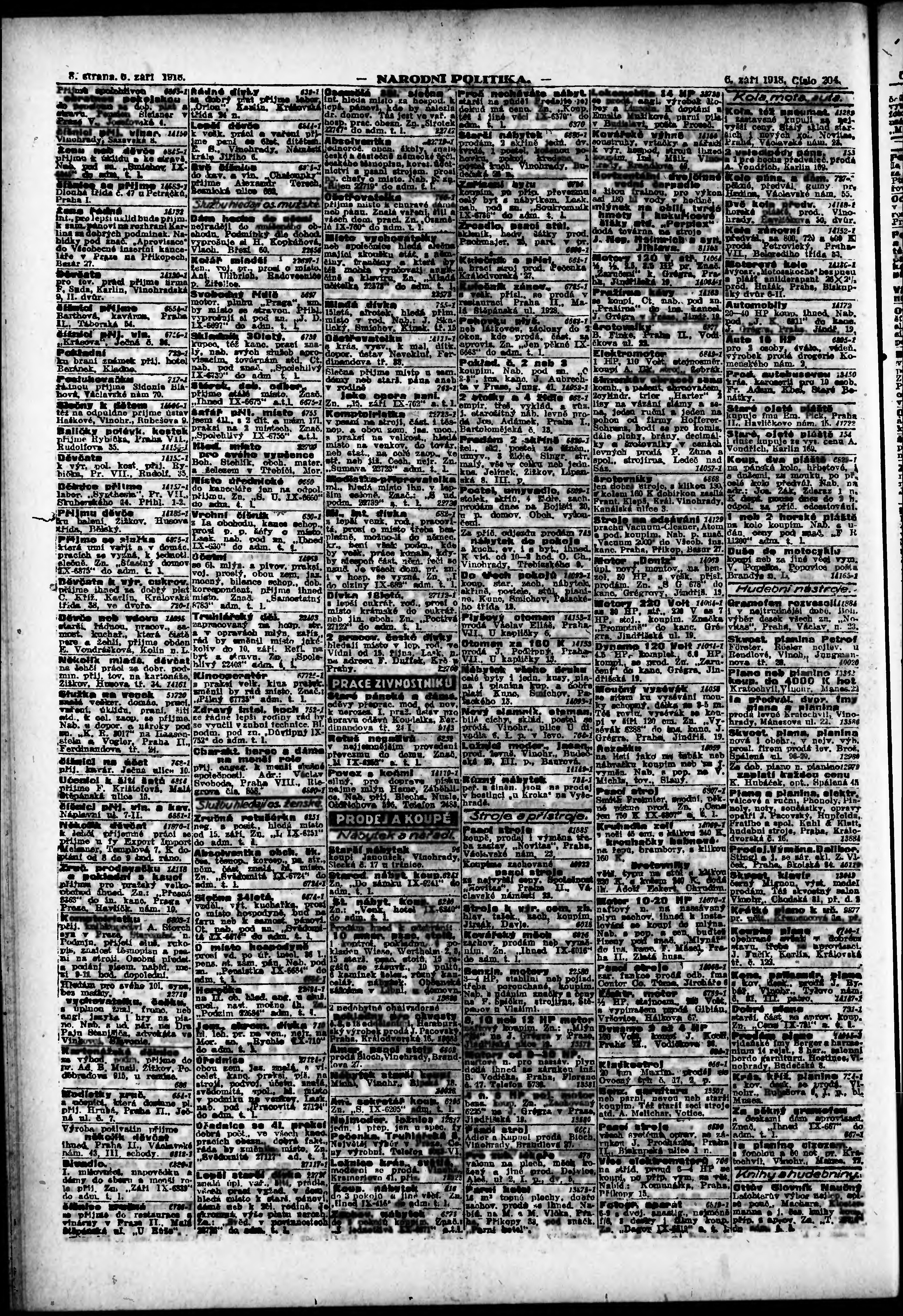 * Datum vydání výtisku: 6.9.1918 Číslo výtisku: 204 Poznámky k výtisku: ranní vydání; vydání pro Prahu;