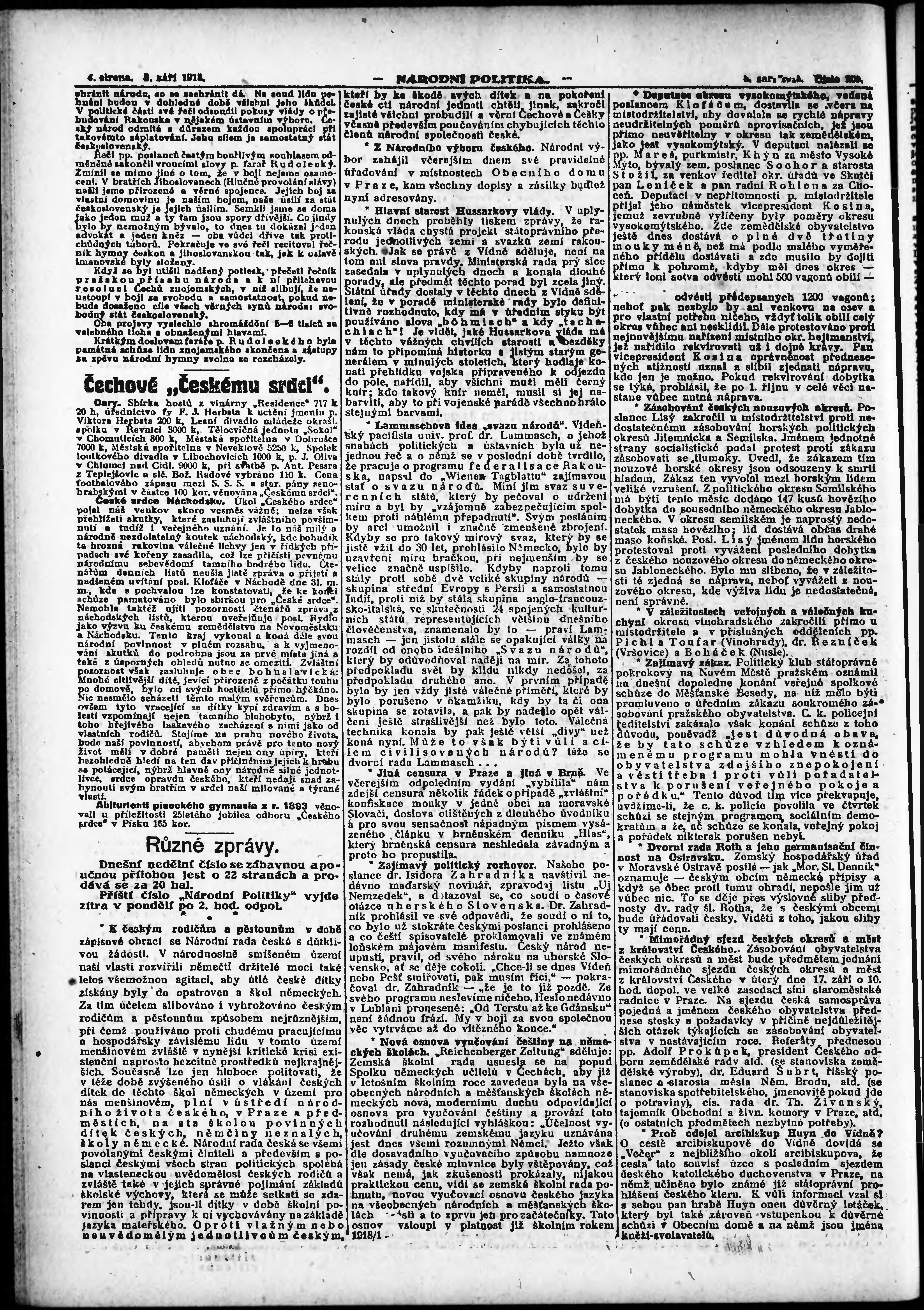 * Datum vydání výtisku: 8.9.1918 Číslo výtisku: 206 Poznámky k výtisku: ranní vydání;