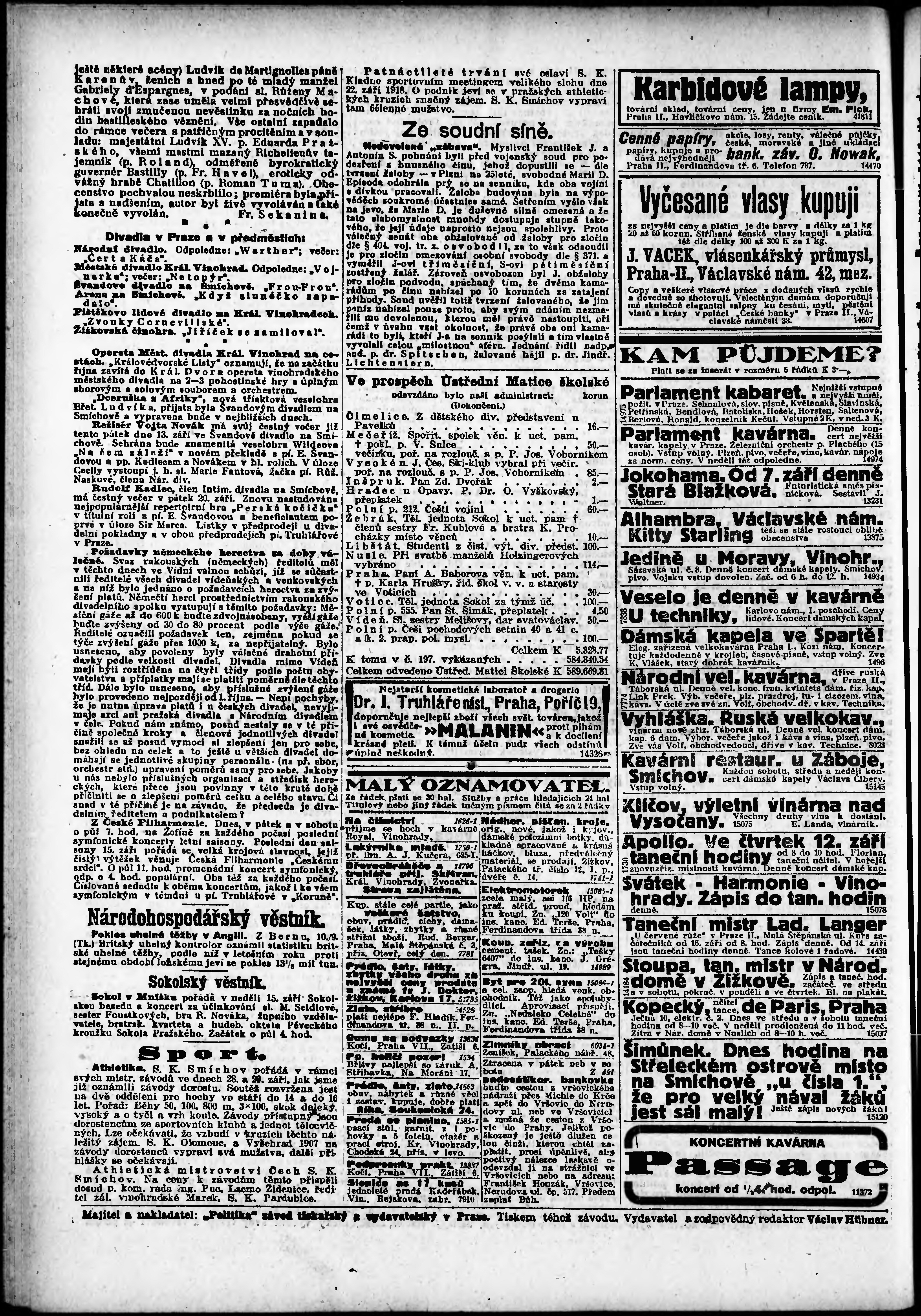 * Datum vydání výtisku: 11.9.1918 Číslo výtisku: 208 Poznámky k výtisku: odpolední vydání;