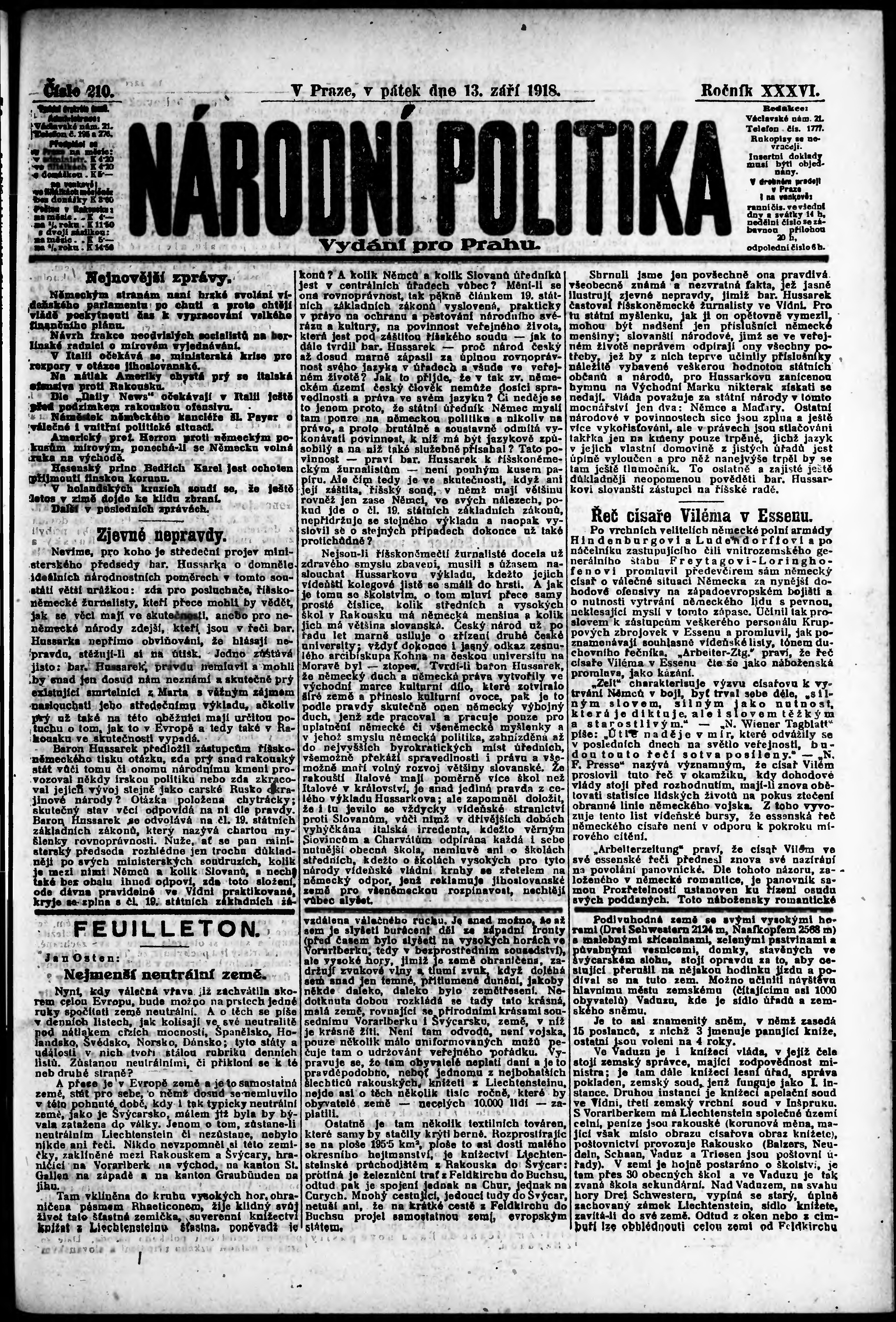 ranní vydání; vydání pro Prahu;