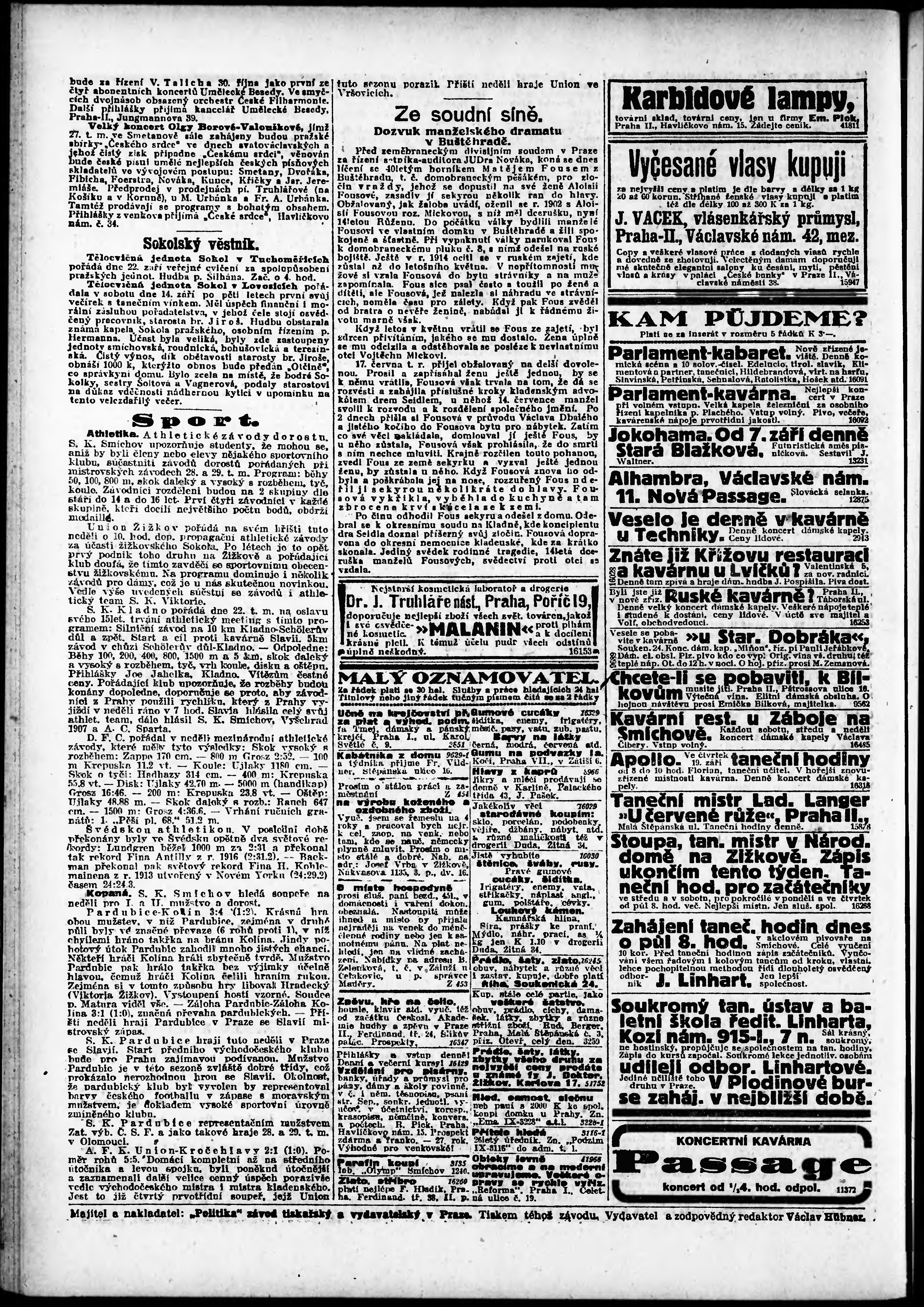 * Datum vydání výtisku: 18.9.1918 Číslo výtisku: 214 Poznámky k výtisku: odpolední vydání;