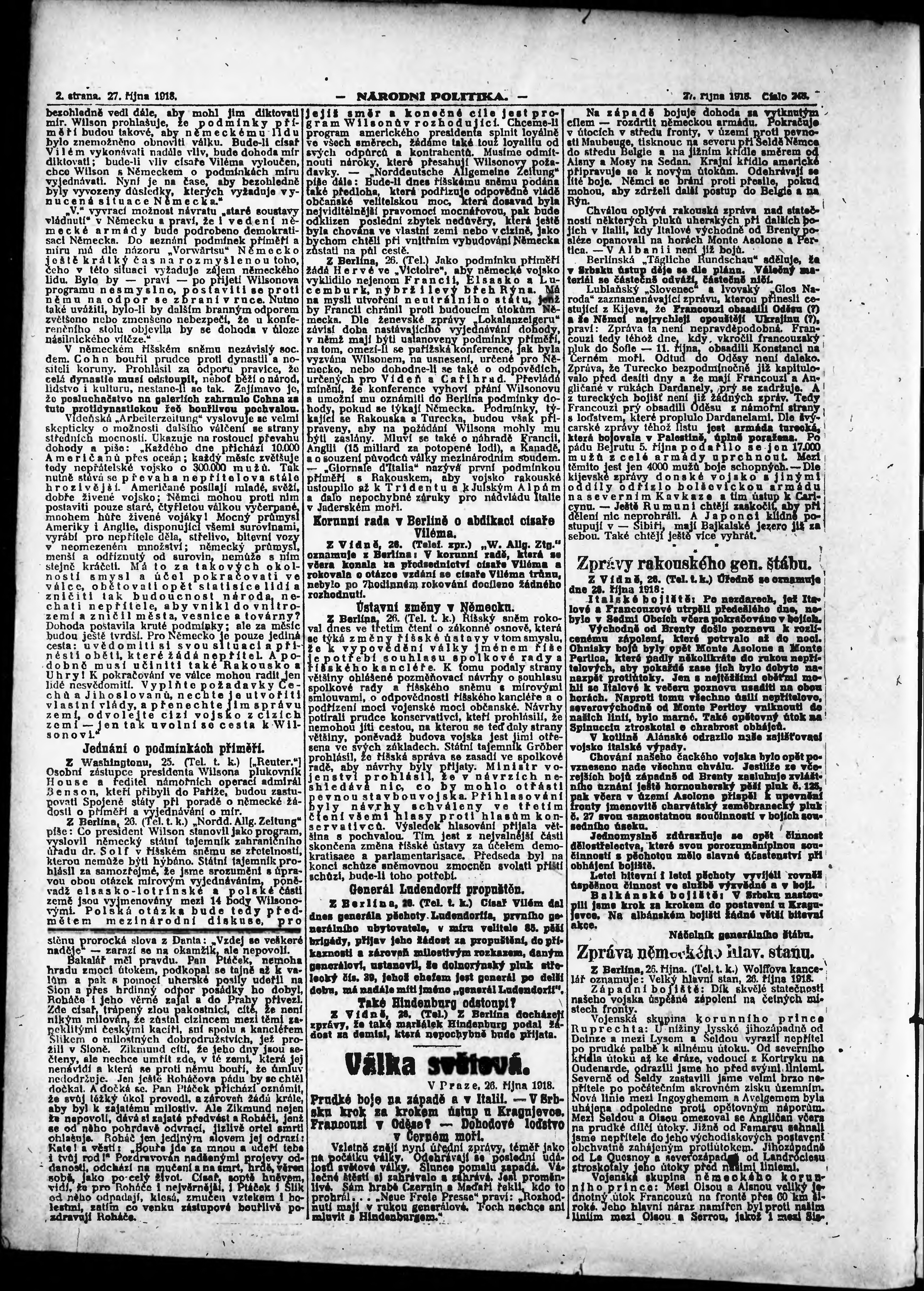* Datum vydání výtisku: 27.10.1918 Číslo výtisku: 248 Poznámky k výtisku: ranní vydání;