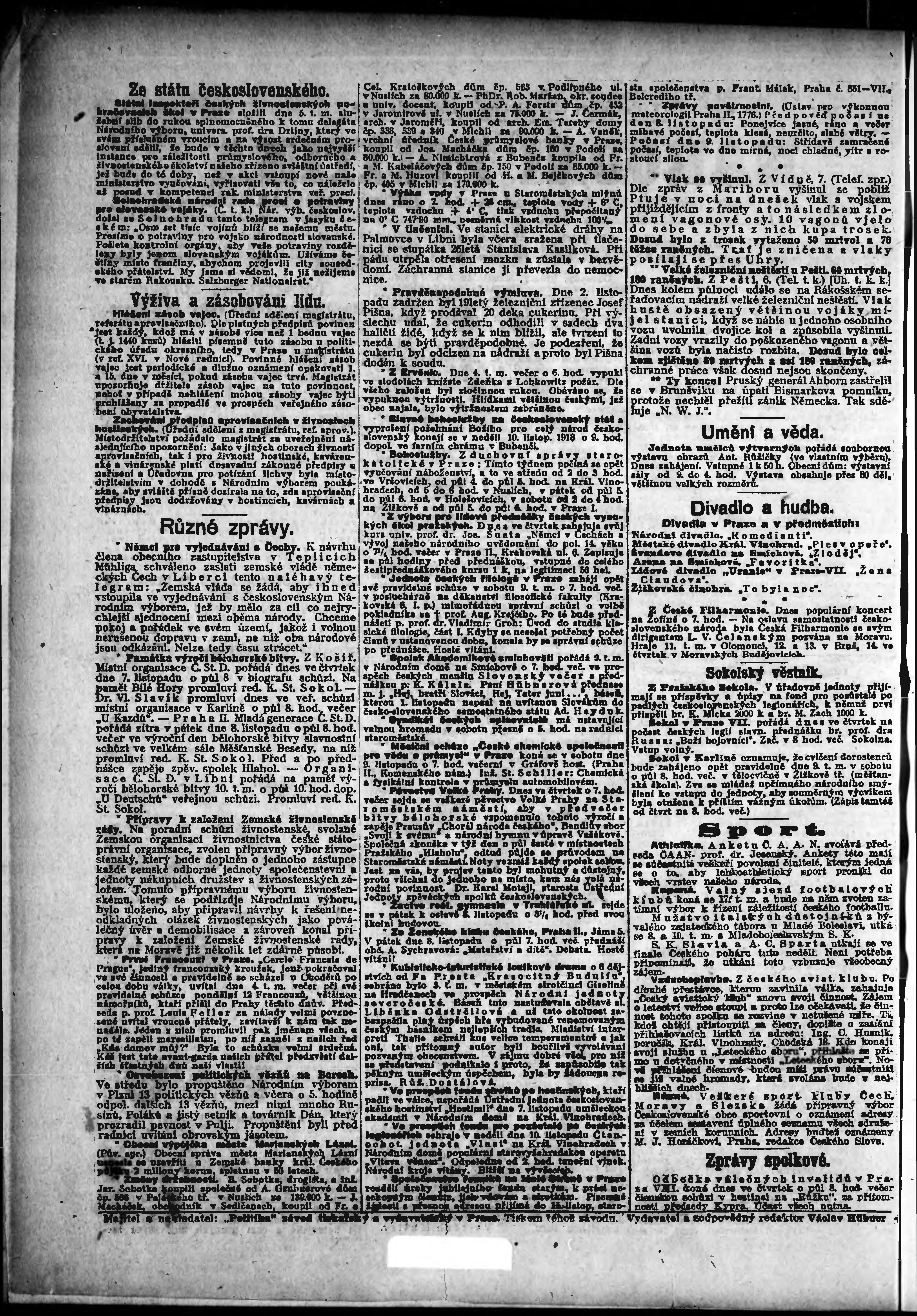 * Datum vydání výtisku: 7.11.1918 Číslo výtisku: 259 Poznámky k výtisku: odpolední vydání;