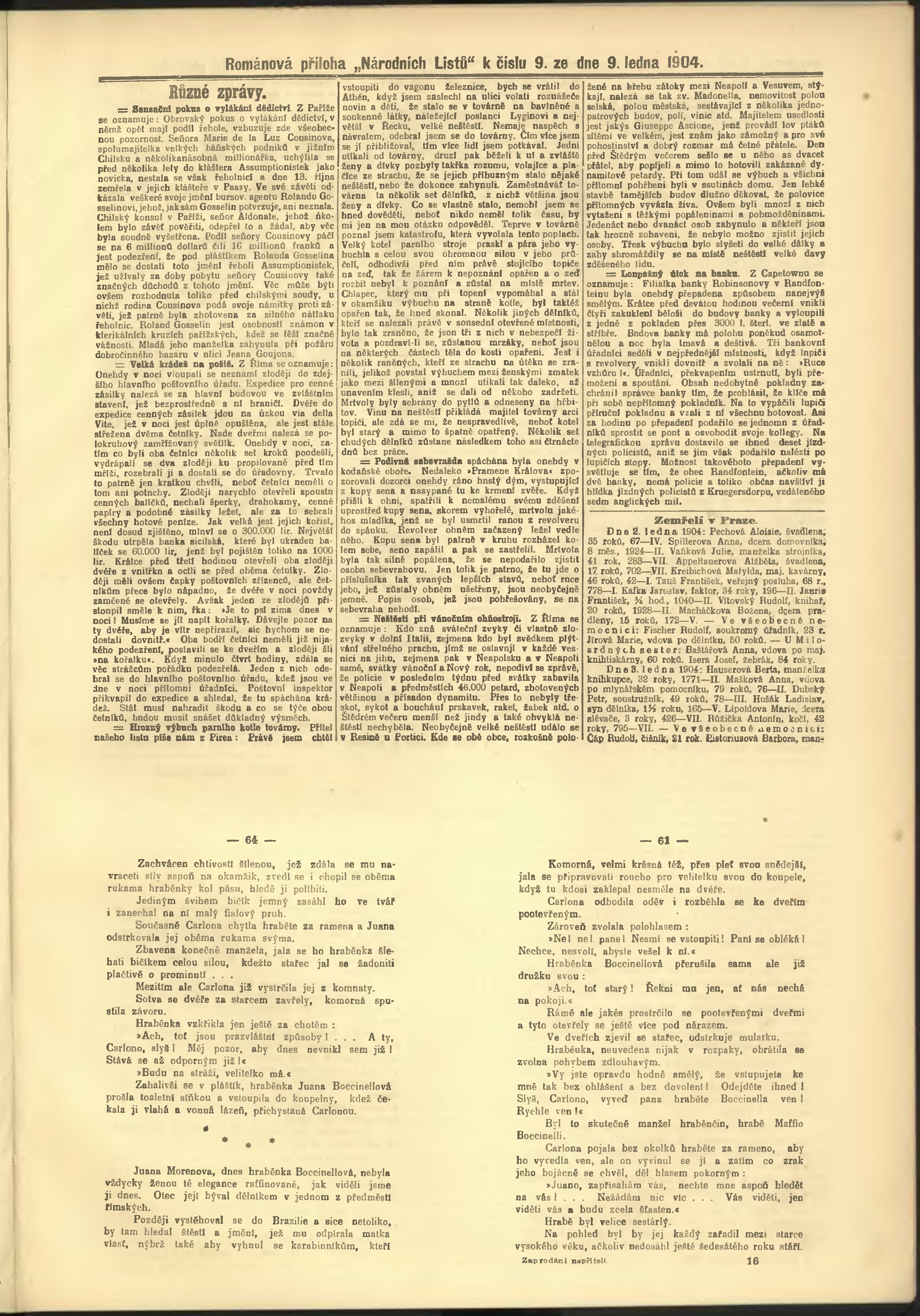 * Datum vydání výtisku: 9.1.1904 Číslo výtisku: 9 Poznámky k výtisku: odpolední vydání;