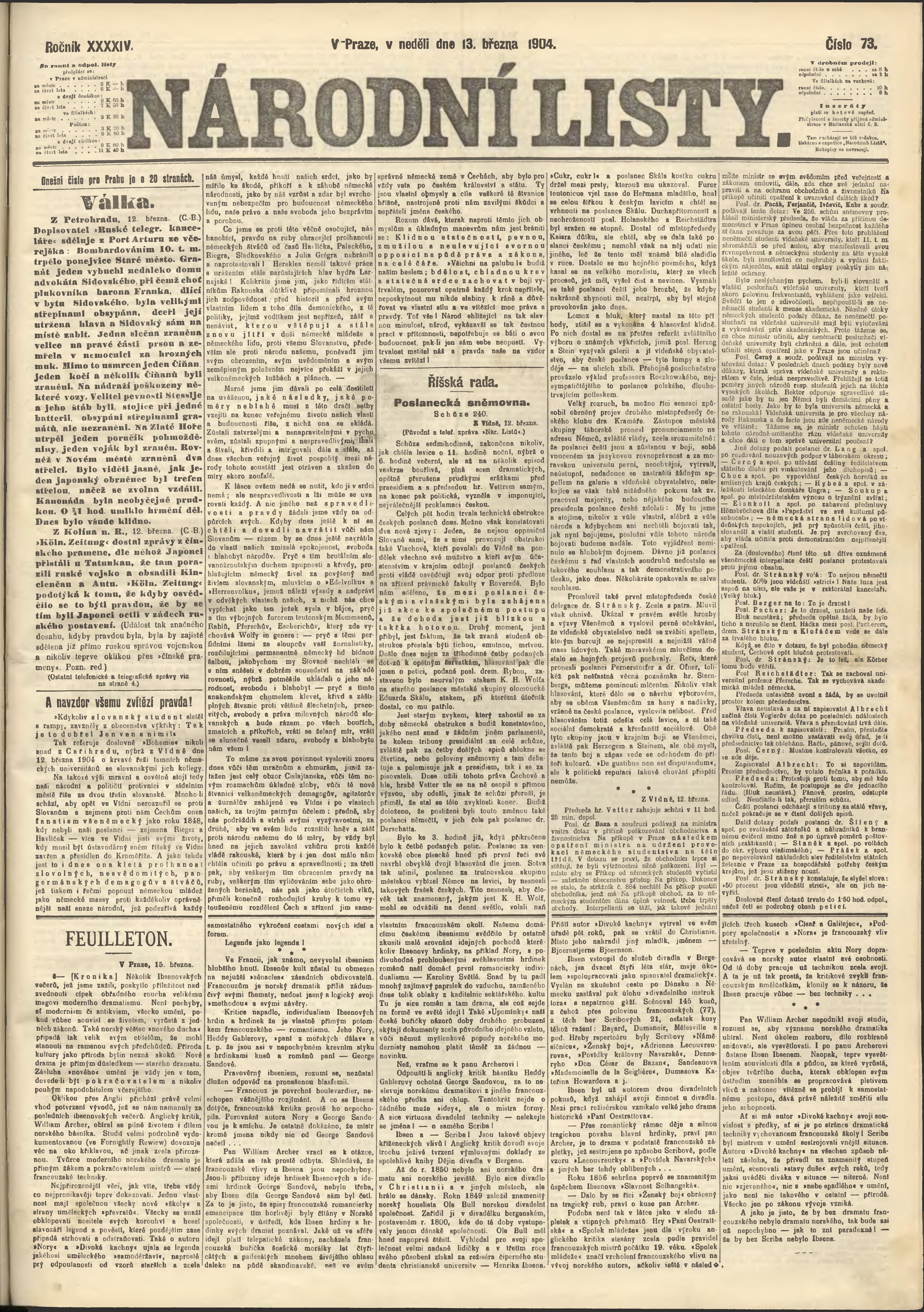* Datum vydání výtisku: 13.3.1904 Číslo výtisku: 73 Poznámky k výtisku: ranní vydání;