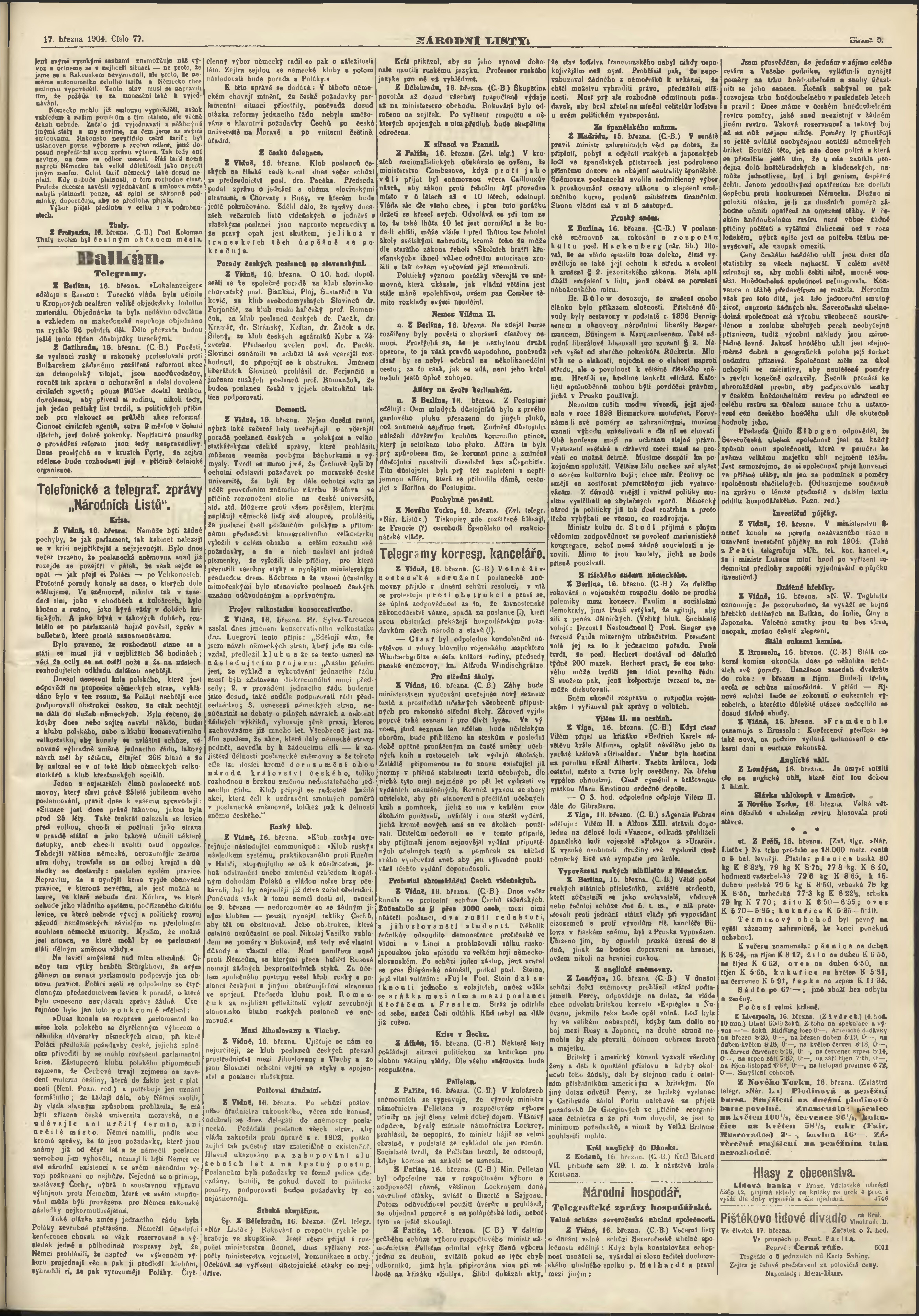 * Datum vydání výtisku: 17.3.1904 Číslo výtisku: 77 Poznámky k výtisku: ranní vydání;