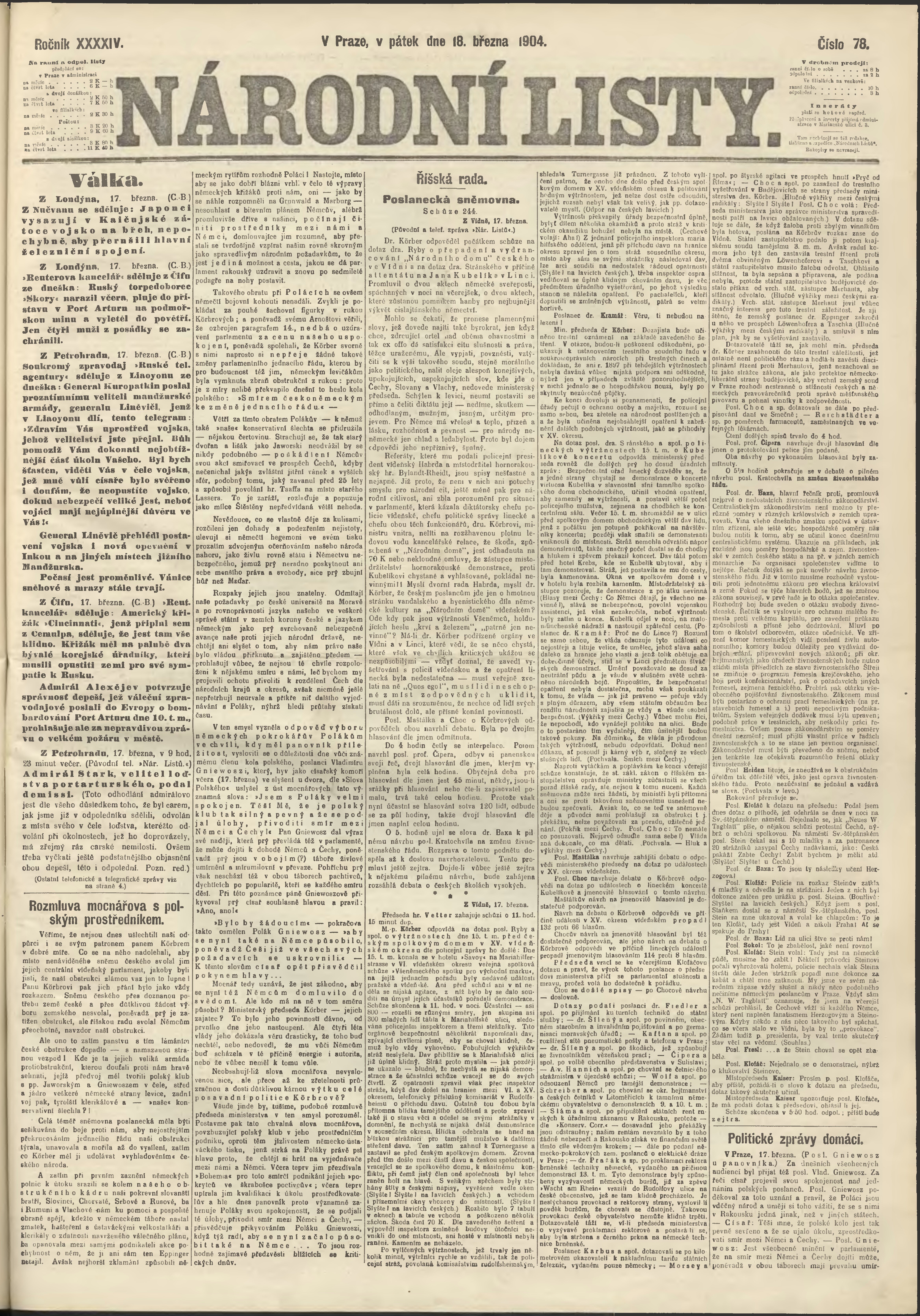 * Datum vydání výtisku: 18.3.1904 Číslo výtisku: 78 Poznámky k výtisku: ranní vydání;