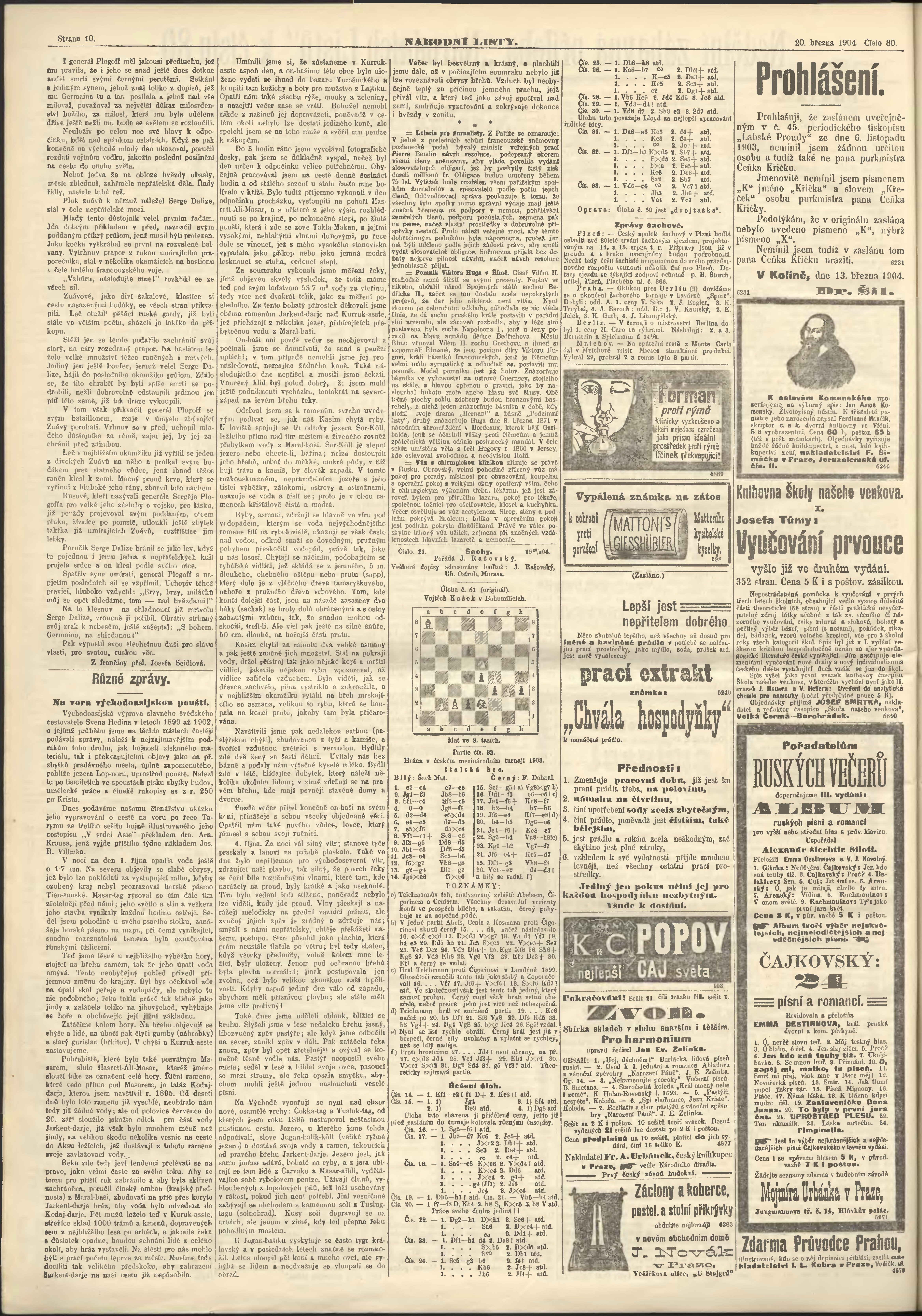 * Datum vydání výtisku: 20.3.1904 Číslo výtisku: 80 Poznámky k výtisku: ranní vydání;