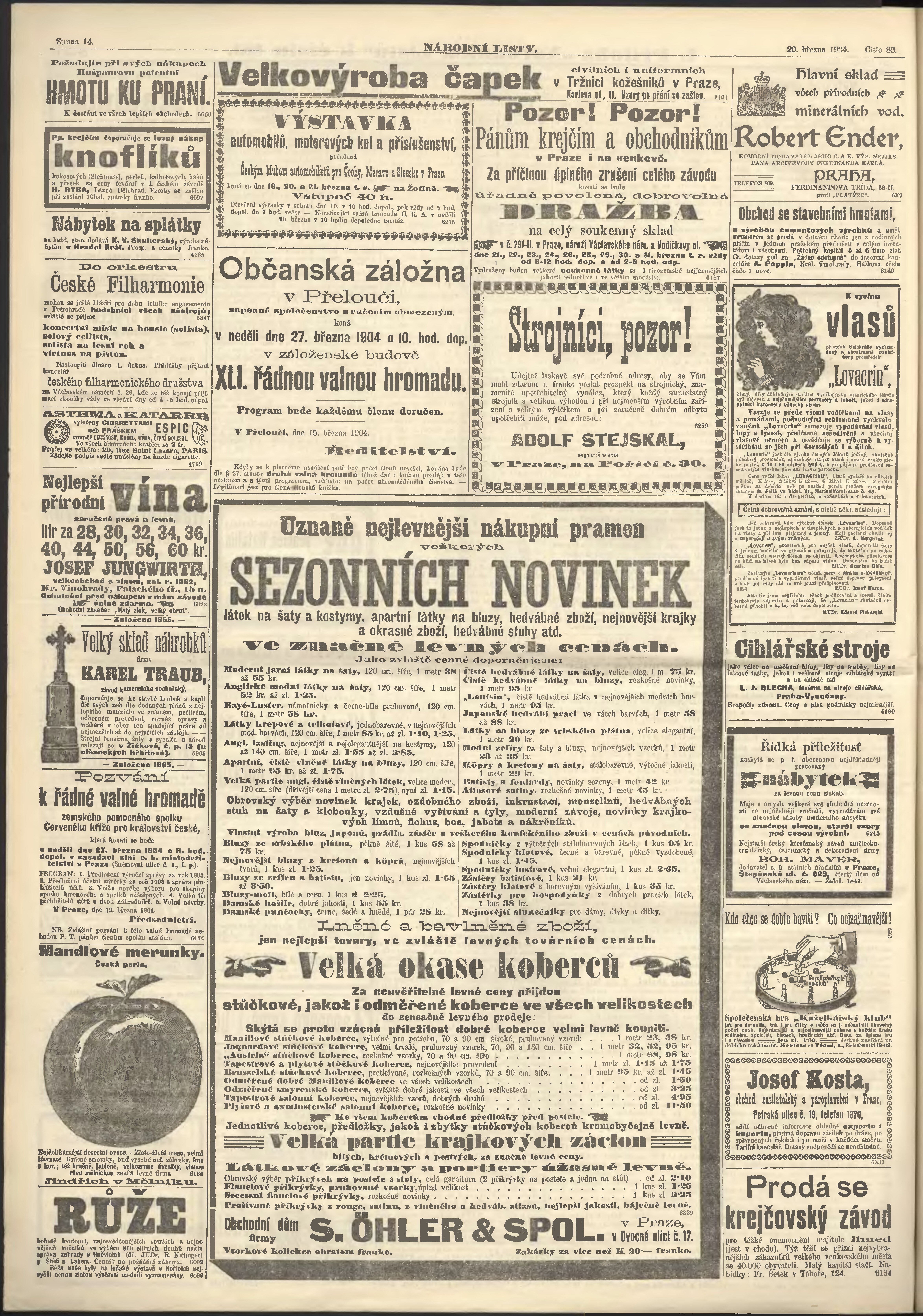* Datum vydání výtisku: 20.3.1904 Číslo výtisku: 80 Poznámky k výtisku: ranní vydání;